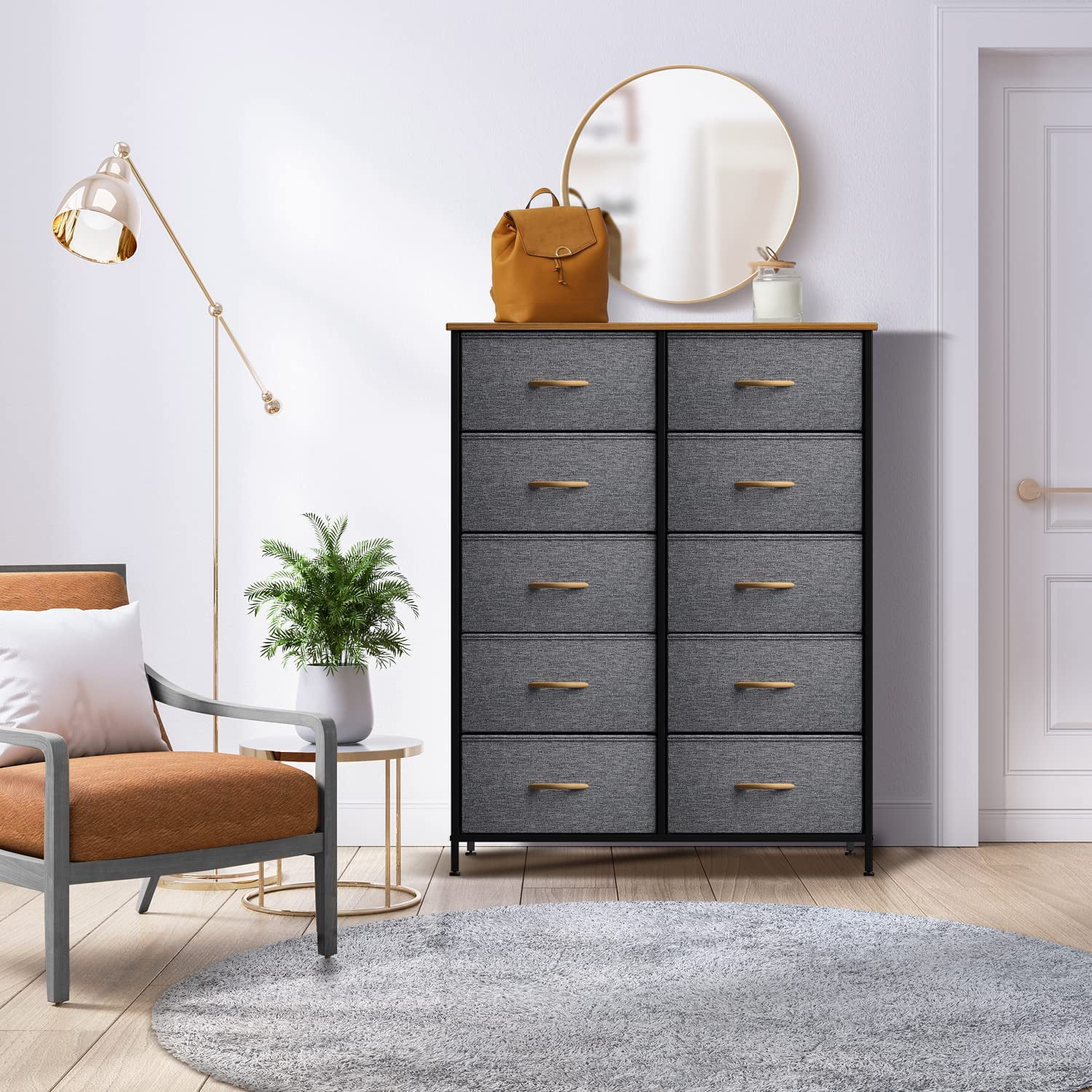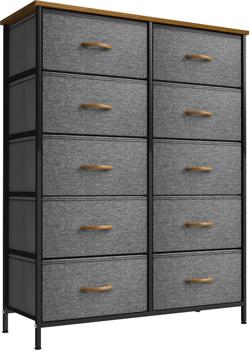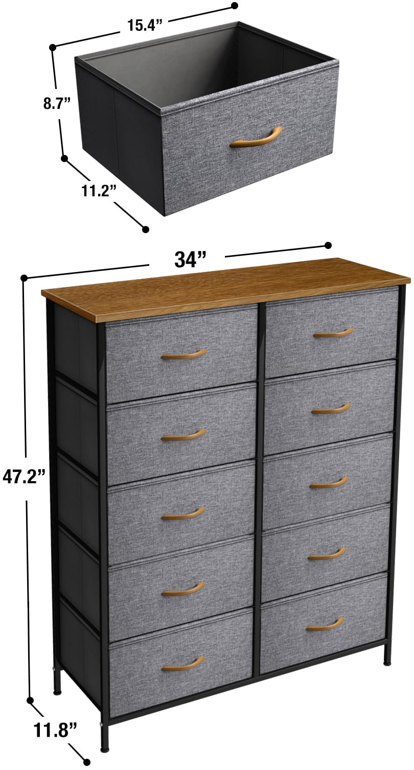 Sorbus Dresser with 10 Drawers – Storage Unit Organizer Chest for Clothes – Bedroom, Hallway, Living Room, Closet, & Dorm Furniture – Steel Frame, Wood Top, and Easy Pull Polyester Fabric Bins