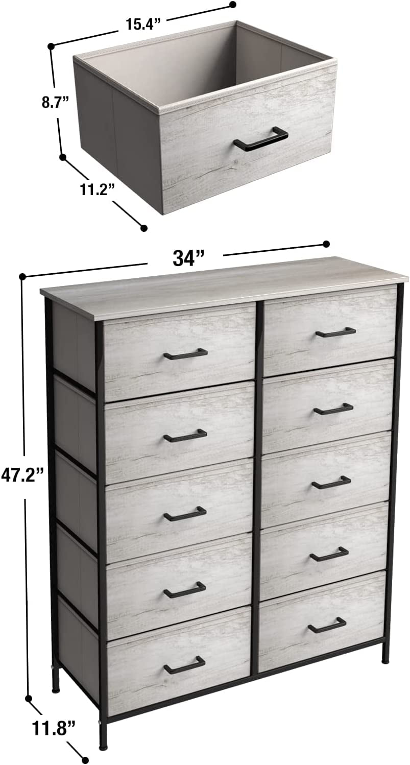 Sorbus Dresser with 10 Faux Wood Drawers – Storage Unit Organizer Chest for Clothes – Bedroom, Hallway, Living Room, Closet, & Dorm Furniture – Steel Frame, Wood Top, & Easy Pull Polyester Fabric Bins