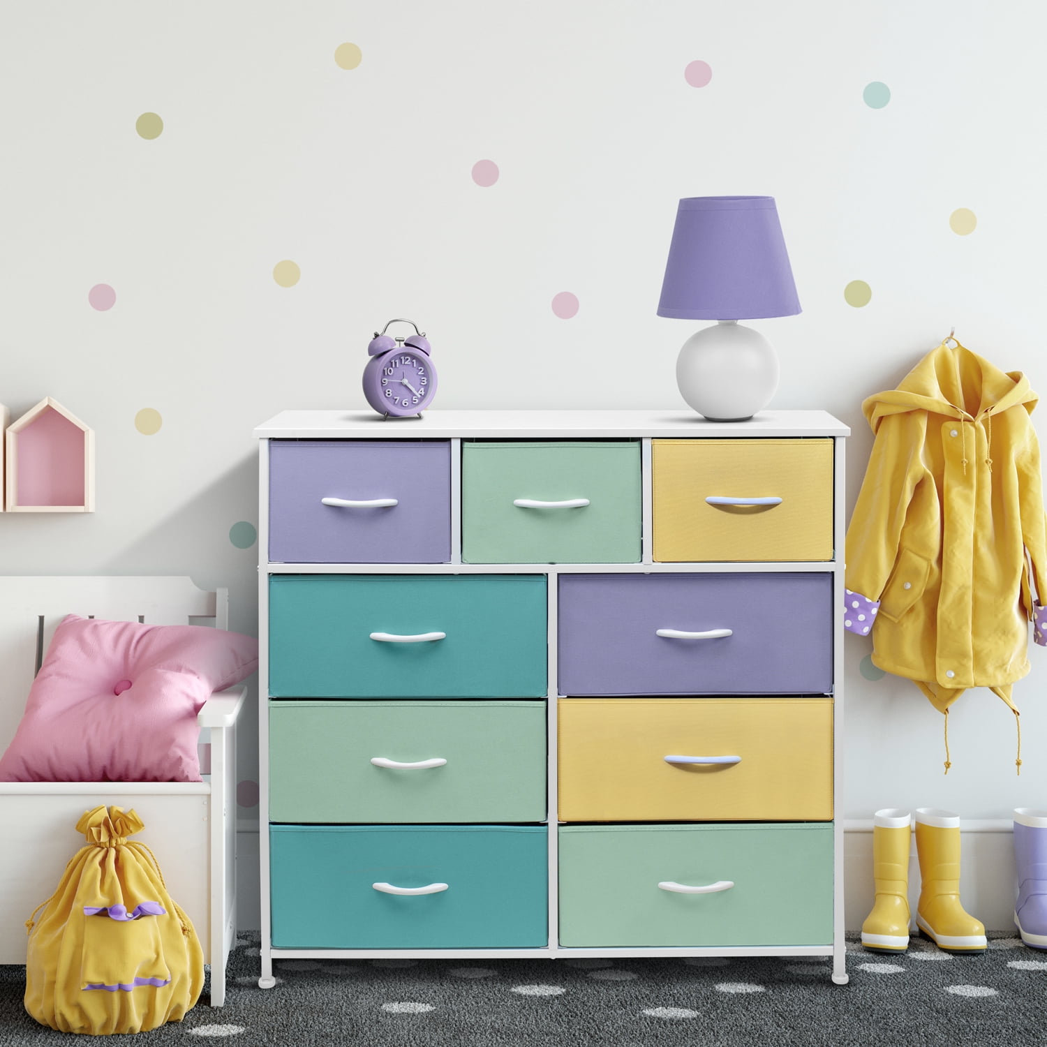 9-drawer dresser with built-in wood handles Lightweight and easy to assemble with included hardware and instructions Non-woven fabric drawers for storing various items