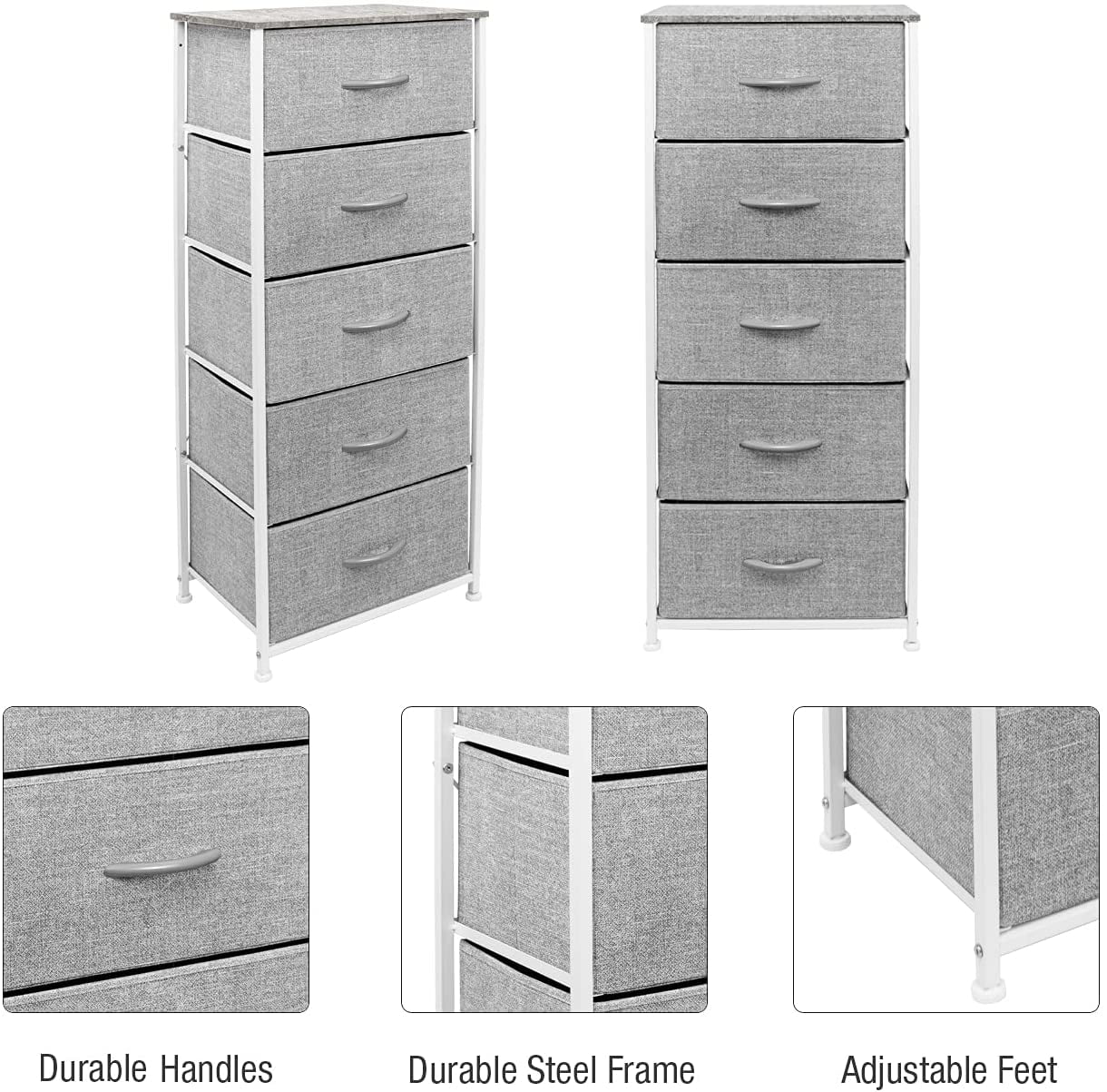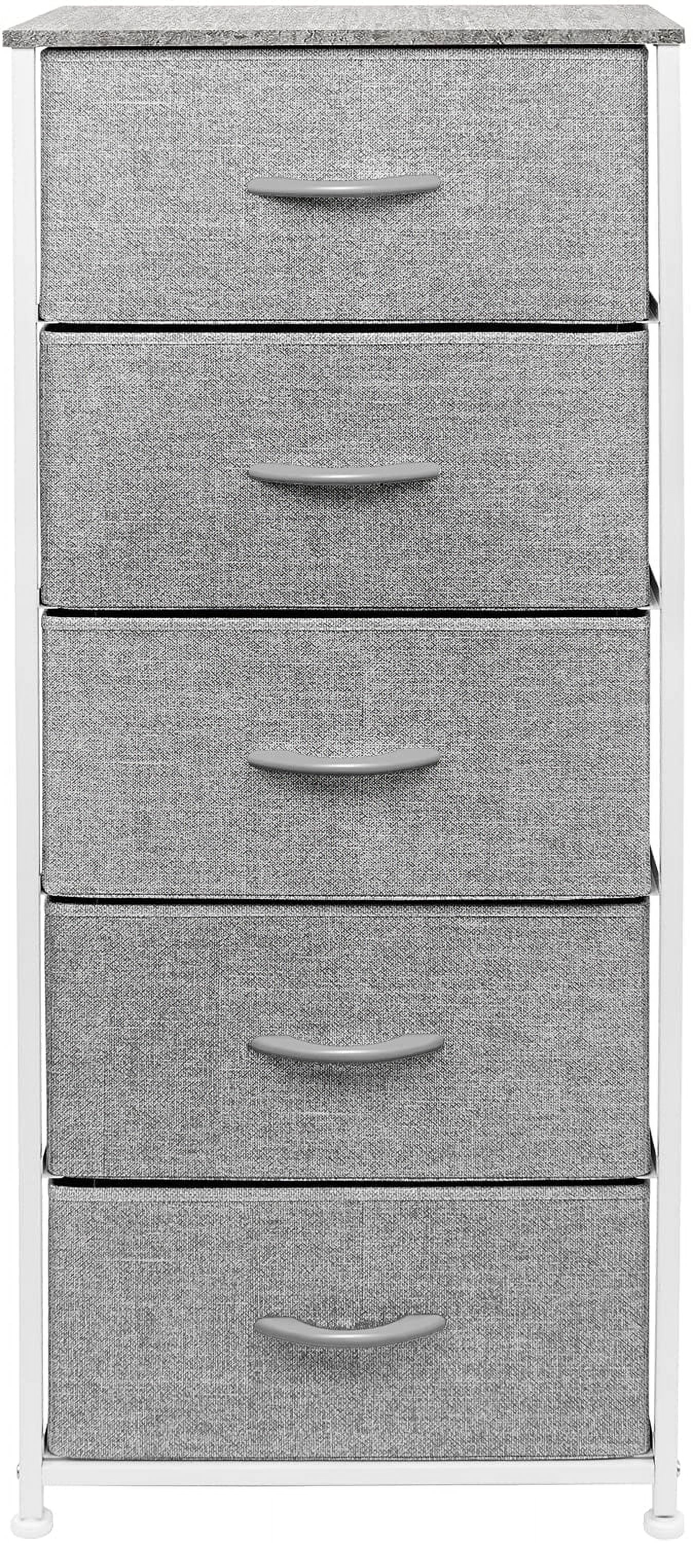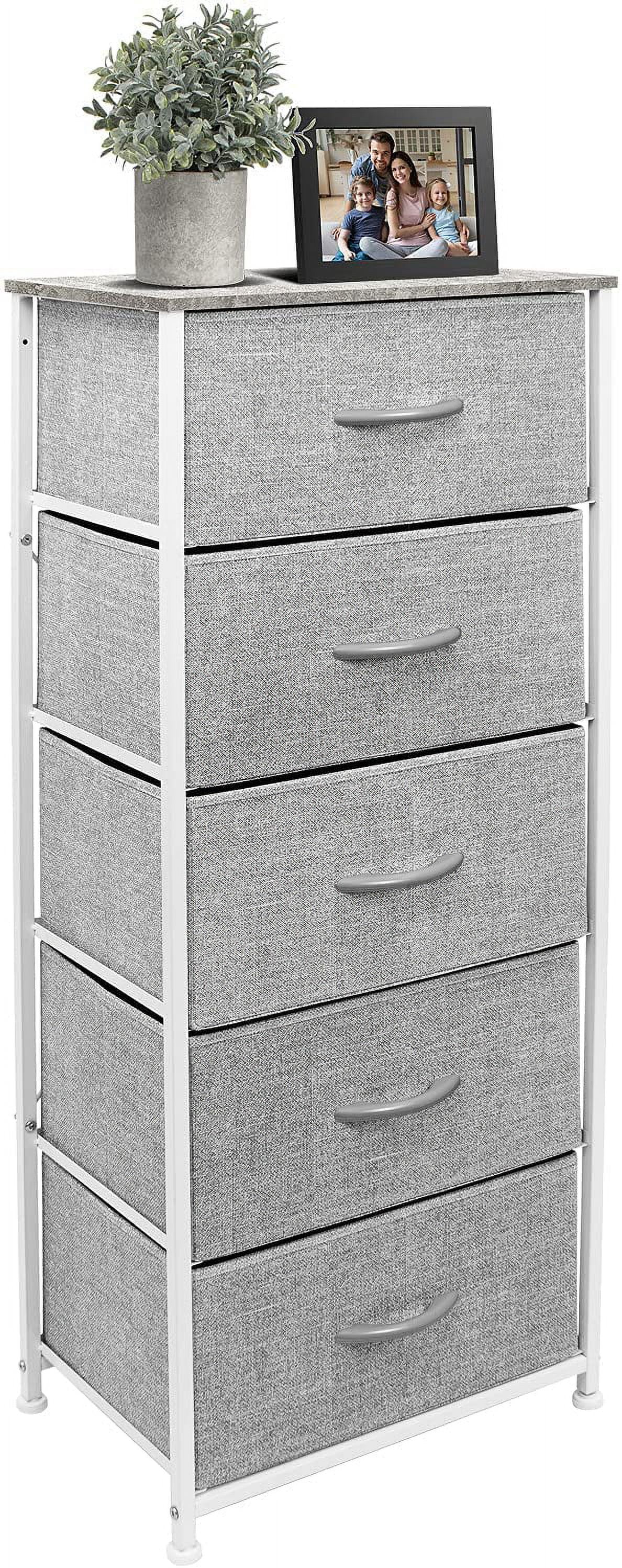 Sorbus Nightstand Dresser with 5 Drawers – Tall Storage Tower Unit Organizer for Bedroom, Hallway, Closet, College Dorm – Chest Drawer for Clothes, Steel Frame, Wood Top, Easy Pull Fabric Bins (Grey)