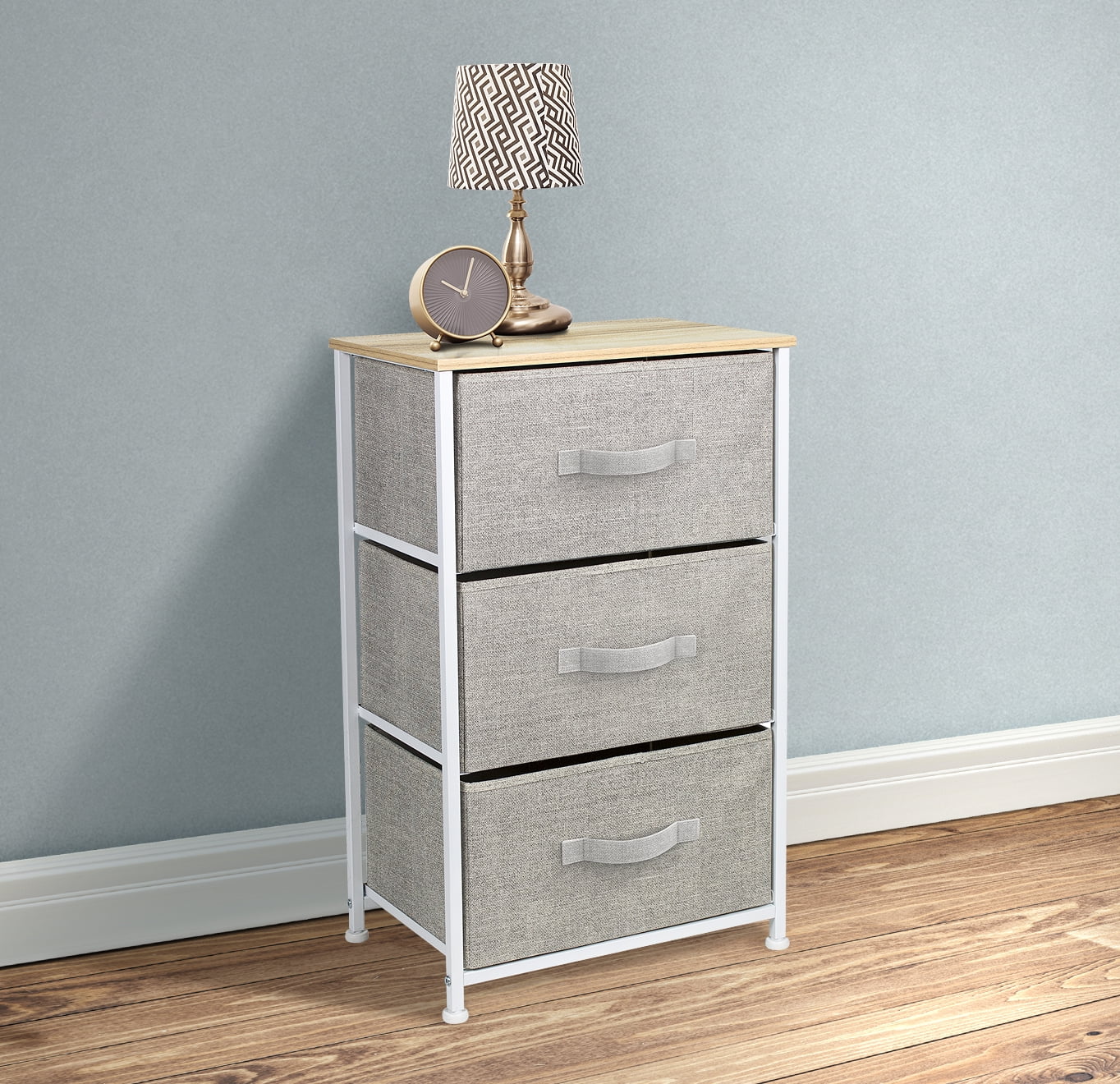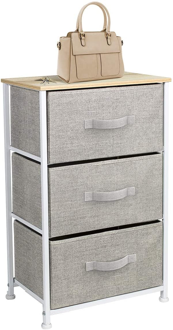 Sorbus Nightstand with 3 Drawers – Bedside Furniture & Accent End Table Storage Tower for Home, Bedroom Accessories, Office, College Dorm, Steel Frame, Wood Top, Easy Pull Fabric Bins (Beige)