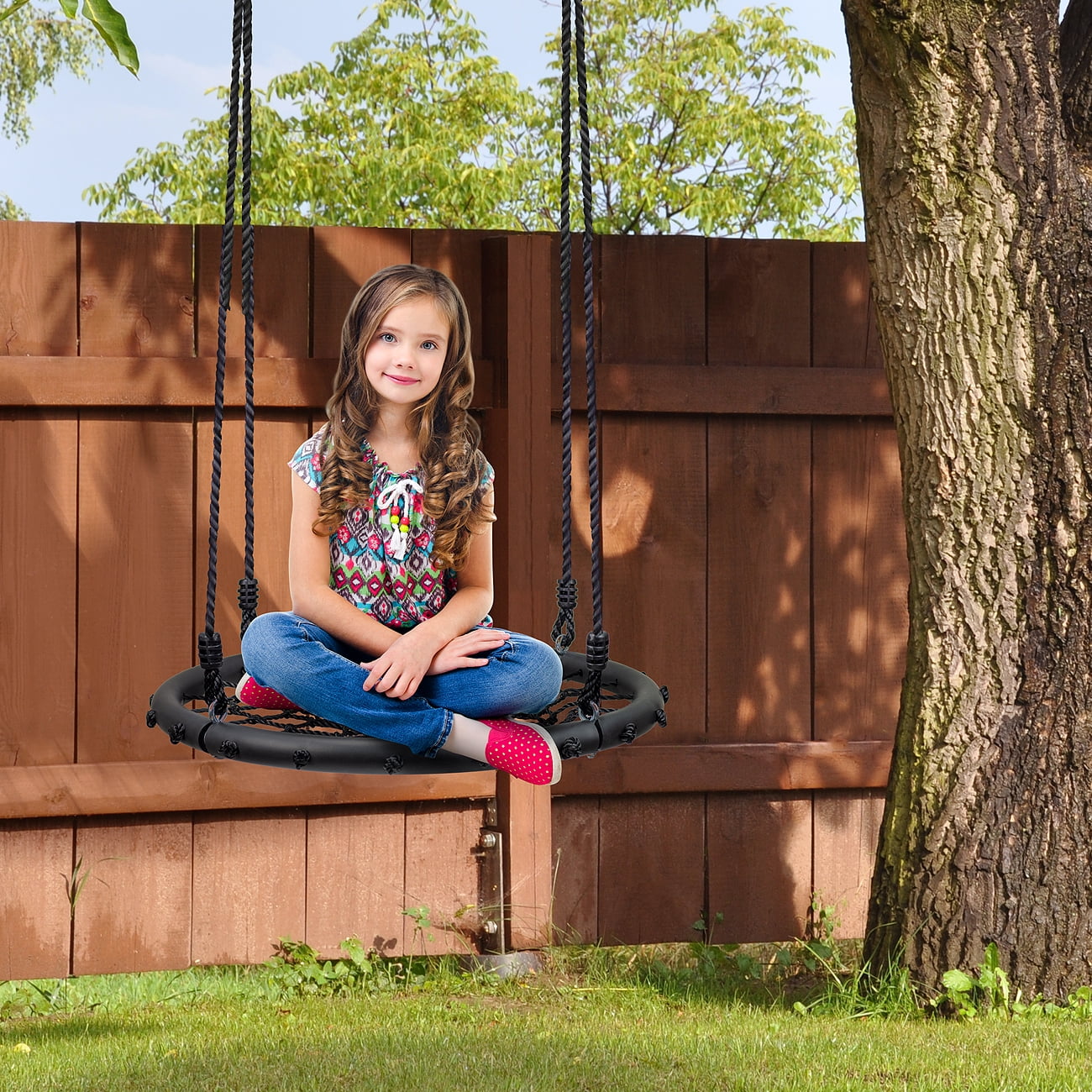Sorbus Spinner Swing – Kids Indoor/Outdoor Round Web Swing – Great for Tree, Swing Set, Backyard, Playground, Playroom – Accessories Included
