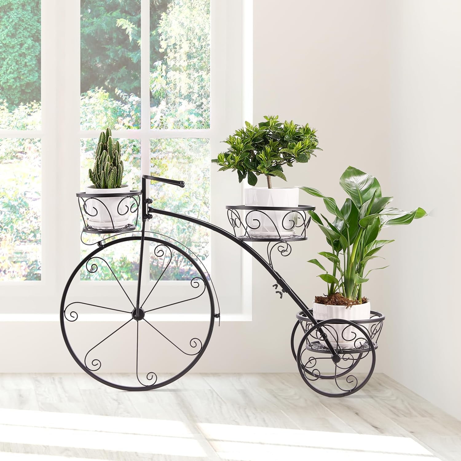 Sorbus Tricycle Plant Stand: Parisian Style Flower Pot Cart Holder, Ideal Gift for Plant Lovers, Black