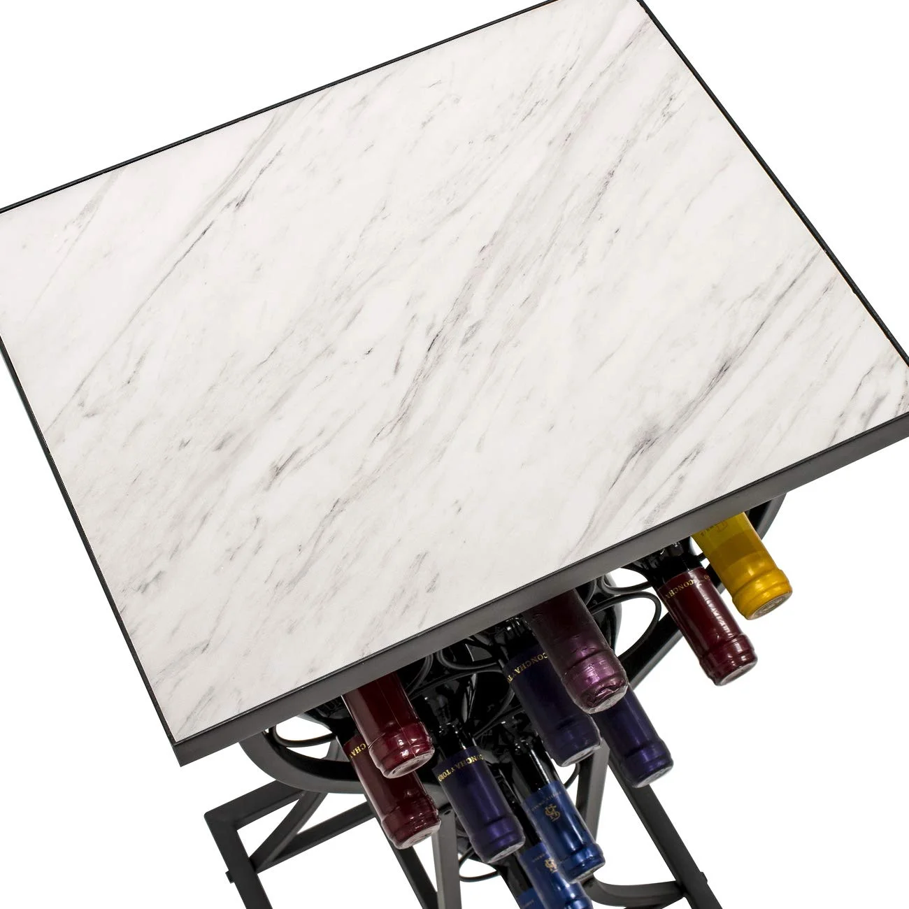 Stunning Design: Unique wine glass silhouette paired with a sophisticated faux marble tabletop for a blend of style and functionality. Space-Saving: The compact, vertical structure ensures it fits even in tight spaces, making it perfect for every home, irrespective of size. Dual-Purpose: Not just a wine rack, but also a table, this piece ensures you have both storage and a surface to entertain. Durable Construction: Made with a robust metal frame and a top of wood + veneer marble, it’s designed for longevity. Perfect Gift: A wonderful present for wine enthusiasts for birthdays, weddings, holidays, and housewarming parties.