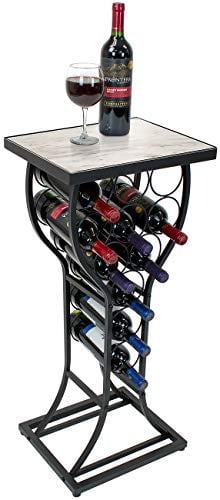Sorbus Wine Rack Console: Freestanding, Holds 11 Bottles, Faux Marble Table