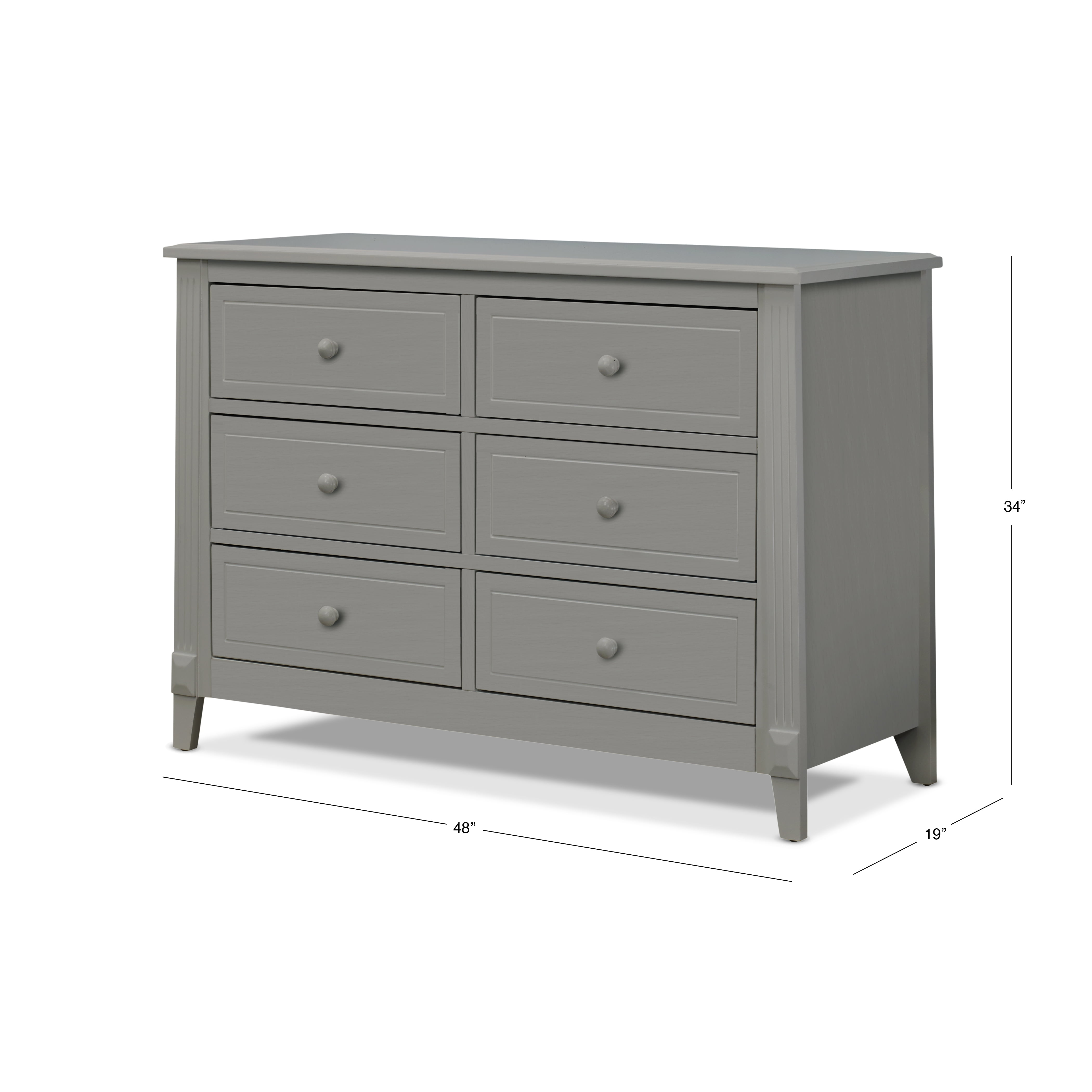 Finish: Weathered Gray 6 spacious drawers for maximum storage Drawer fronts feature stylish grooved details and rounded wooden drawer pulls Under-drawer suppers and rails for added stability Dovetail corners and smooth interiors Full-extension ball bearing glides lock for safety ncludes anti-tip kit to secure item to any wall 1 year limited warranty. JPMA certified Under-drawer supports and rails for additional stability and full-extension ball bearing glides that lock for safety.