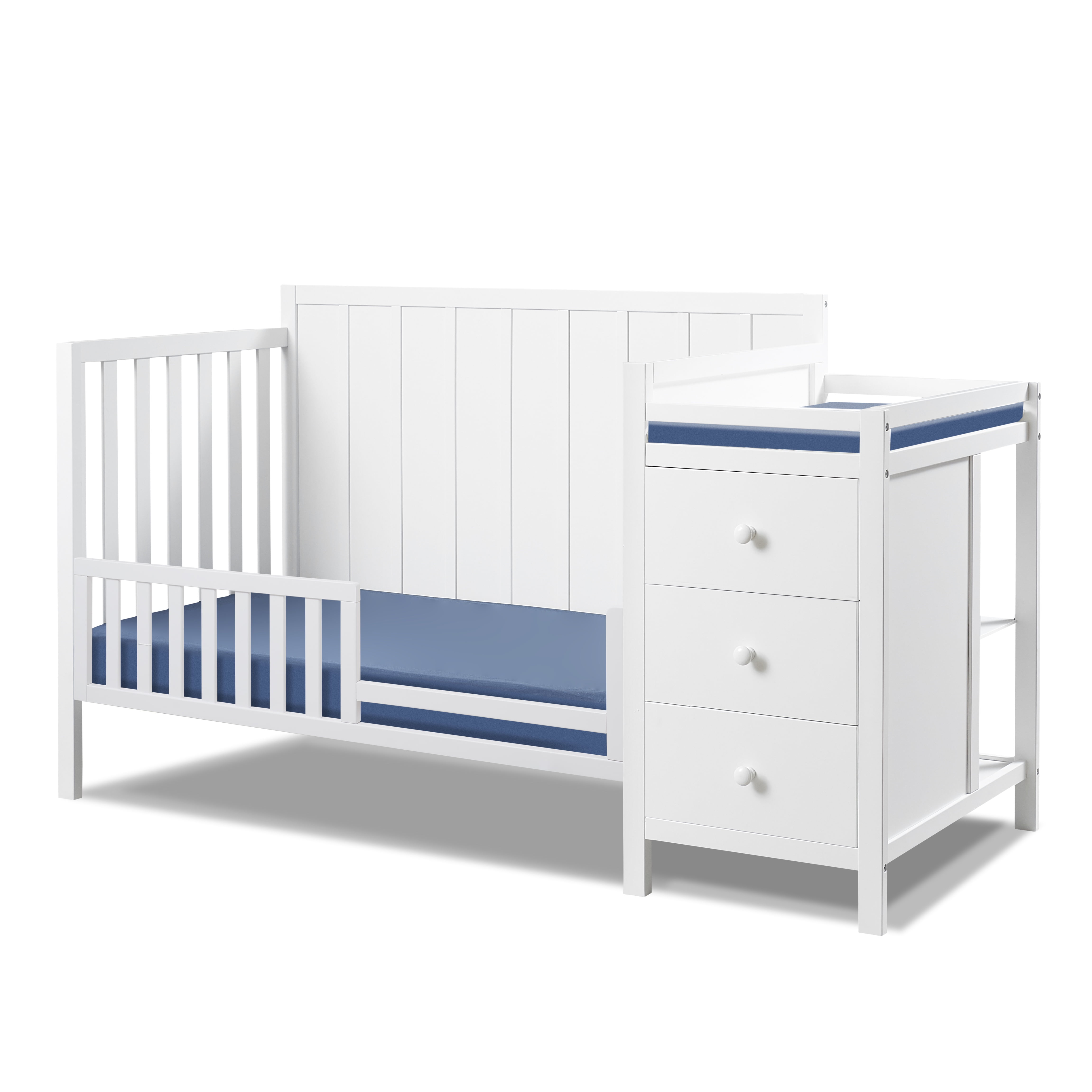 3 large storage draws with changer storage shelve on side of changer Convert to toddler bed Convert to full size bed