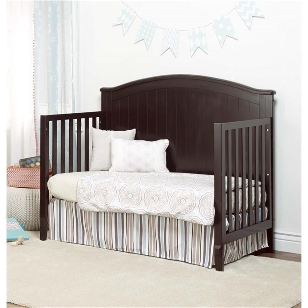 Finish: Espresso Converts from a crib to a toddler bed, day bed, and full-size bed (toddler and adult rails are not included) Adjustable height Assembly required JPMA certified Meets all ASTM standards 1-year manufacturer’s warranty