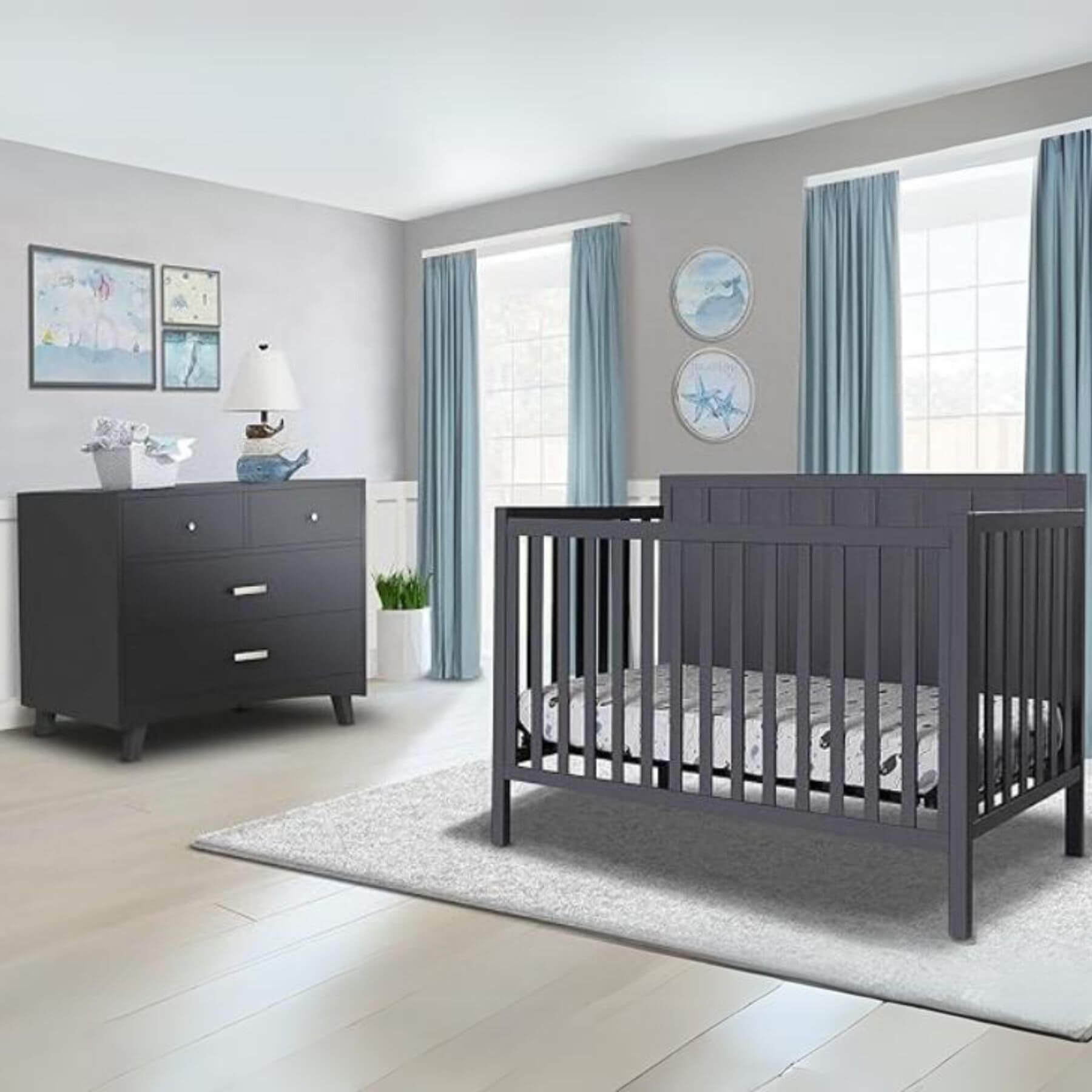 4 spacious drawers for maximum storage Full-extension drawer glides for easy opening and closing Includes anti-tip kit to secure item to any wall 1-year limited manufacturer’s warranty JPMA certified