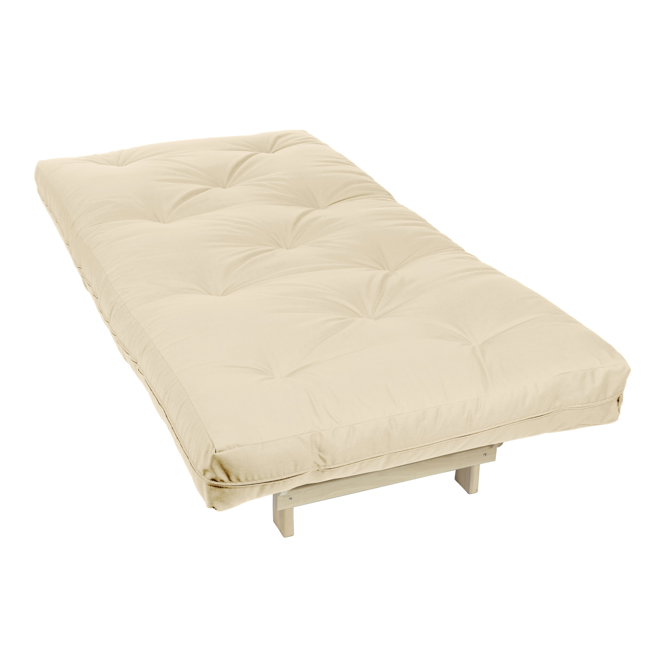 Relax in style on this twin-size futon mattress. This futon mattress features a cotton-wrapped foam construction fill for maximum comfort. Lace tufted fabric gives the futon a ‘sofa-like’ appearance. The comfortable design can easily fold for sofa or bed positions. The stylishly durable upholstery-grade polyester cover and dual gel allows this mattress to be reversible, and does not require a cover.