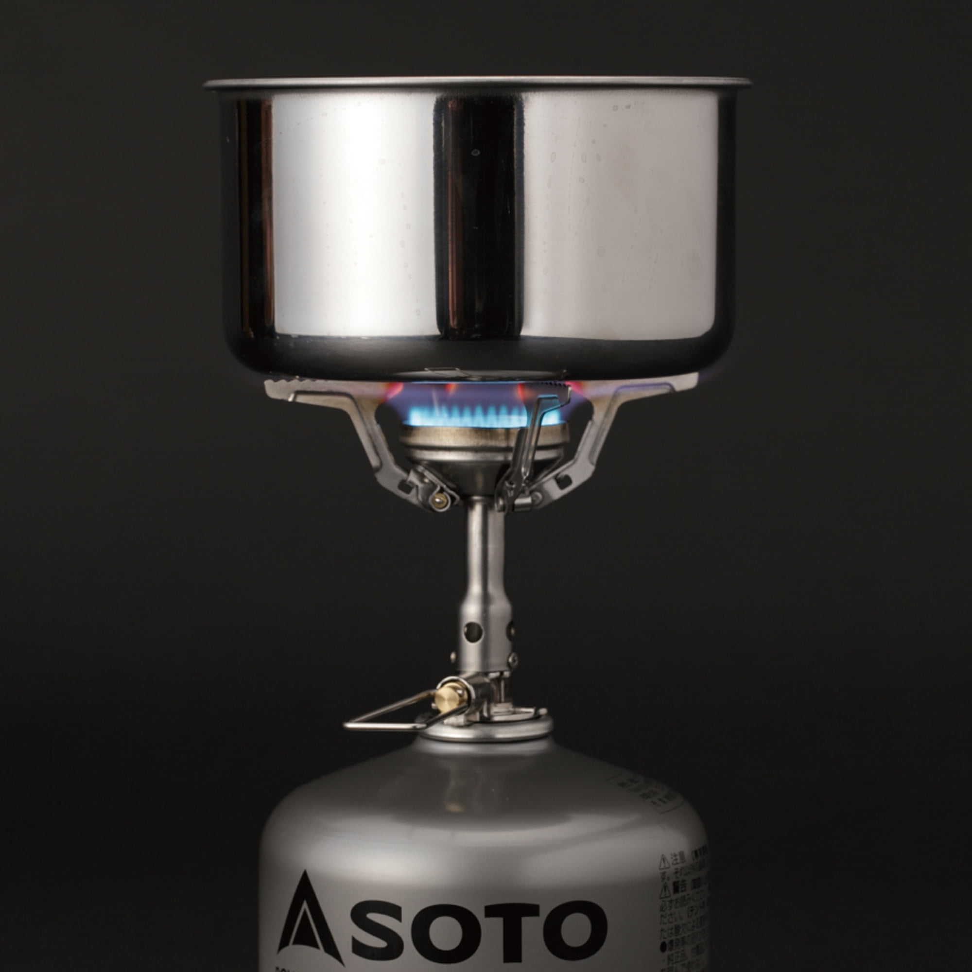 The SOTO Amicus is a reliable, high performance, low-cost stove. Highly recommended for first time stove users. Light-weight and compact. Comes with 4-prong pot supports for stability. Package includes Amicus without Stealth Igniter and stow bag. Output: 2800 kcal/h 3260w 11000 BTU. Duration: Burns approx.1.5 hours with 8 oz (250g) canister.