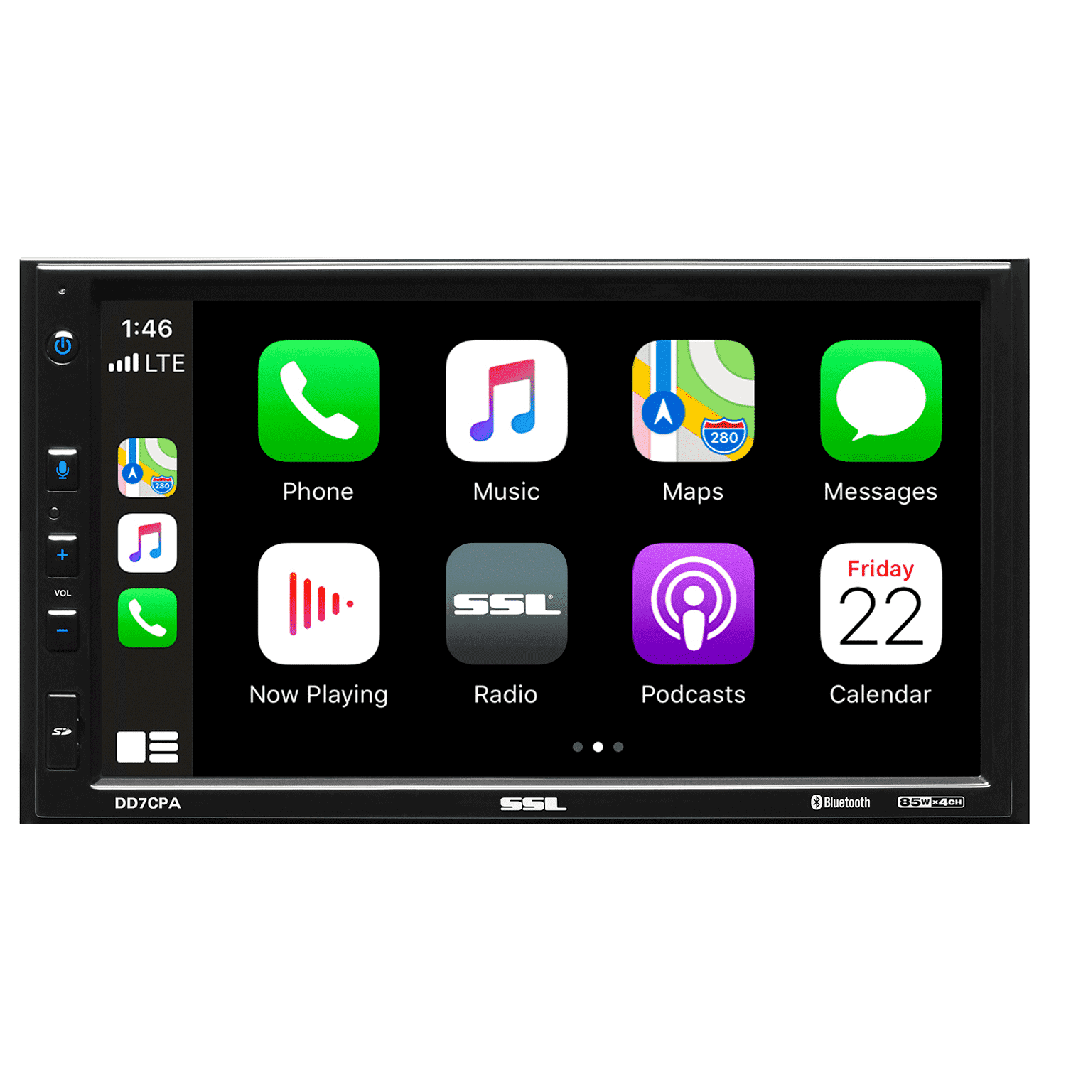 Sound Storm Laboratories DD7CPA Car Stereo, 7 Inch Touchscreen, Bluetooth, Apple CarPlay Apple CarPlay allows access to iPhone icons via Siri voice controls or touchscreen Messages feature enables Siri to read, reply, and send messages for safer driving Maps functionality helps find gas stations and restaurants along your route with real-time navigation Bluetooth connectivity supports hands-free calling and music streaming from various apps Android Auto integration lets you use Google Assistant for navigation, messaging, and music control