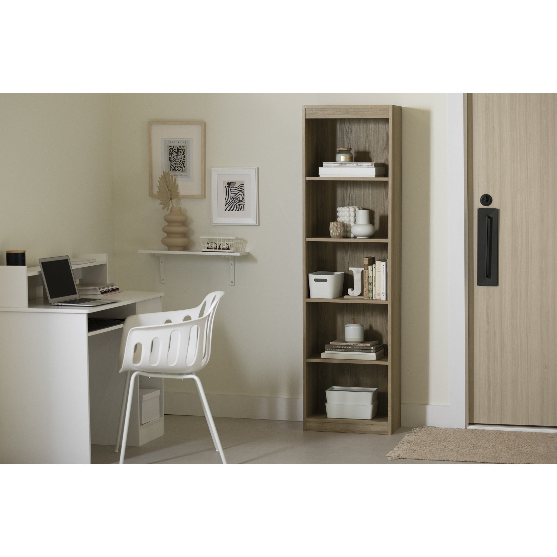 A VERSATILE BOOKCASE: This shelving unit, with its versatile design, will be fabulous in your home office, living room, basement, or bedroom. The straight lines will set off your selection of books and decorative items. IDEAL FOR A SMALL ROOM: This bookcase, with its narrow configuration, can fit in a tight space. It gives you extra storage without taking up a lot of floor space. ADJUSTABLE SHELVES: The five open compartments are separated by three adjustable shelves – you can set each one at the height you want, and they can hold up to 15 lbs., while the fixed shelf can hold up to 25 lbs. 5-YEAR LIMITED WARRANTY: South Shore is proud to stand behind this 5-shelf narrow bookcase with an exclusive 5-year limited warranty. Shop with confidence knowing your purchase is always covered. EASY ASSEMBLY INSTRUCTIONS: All products come with a clear assembly document that will guide you through all steps. If you have any questions during the assembly do not hesitate to contact South Shore Furniture for immediate support.This item is shipped in 1 box, make sure to have a friend with you Wipe with a dry cloth BOX INFORMATION:Box #1 : 77.25″ D x 12.5″ W x 3.5″ H, 50.0 lb.