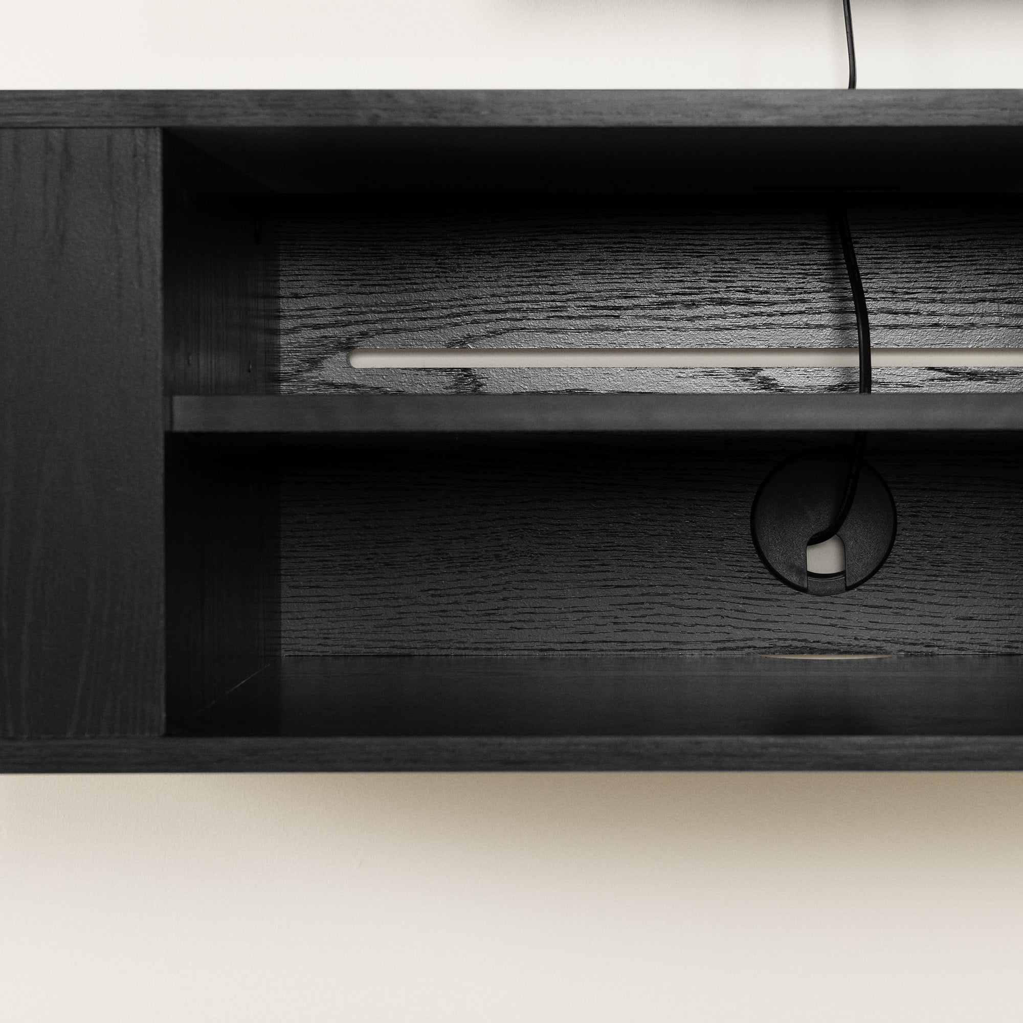 For REPLACING PARTS and HELP DURING ASSEMBLY, please contact us by phone at 1-800-290-0465, text message at 915-800-2833 (USA) (fees may apply), email at [email protected] or fill a part request form on . South Shore City Life, Contemporary Wide Wall Mounted Console, Black Oak DESIGNER STYLE. This modern, designer look wall mount media console will free up space and give your living room a light, airy look. ELECTRONICS STORAGE. With multiple open storage spaces, you’ll have space for all of your A/V devices – six open spaces on the front with adjustable shelves and can house all of your electronics, and a hole in the back will help you organize all of their cords. MORE STORAGE ON THE SIDES. Two lateral open spaces on the sides give you more space for media storage. Features a hole for convenient wire management Made in North America with non-toxic, laminated particleboard. 5-year limited warranty. Any questions? Contact South Shore, available 7/7: 1-800-290-0465 or Assembly is required and tools are not included. All products come with a clear assembly document that will guide you through all steps. If you have any questions during the assembly do not hesitate to contact South Shore Furniture for immediate support. This item is shipped in 1 box. Box dimensions : 75.75″ (L) x 17″ (W) x 4″ (H) 71 lb All our products meets or exceeds North American safety standards and our packaging are tested and certified to reduce the risk of damage during shipment. Clean with a dry cloth