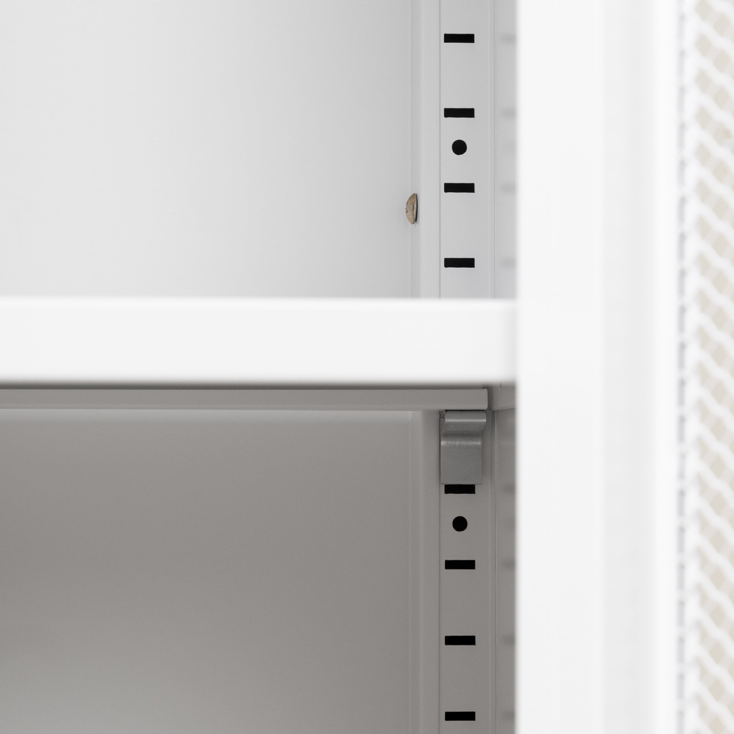 An ideal storage solution We’ve created the perfect metal cabinet to store all those items that are still looking for a place in your home! Its two adjustable shelves and one fixed shelf will hold your DIY tools, children’s toys and books, or even the mittens or caps and hats lying around in the entry hall. A trendy Scandinavian style This storage unit has it all! We like its minimalist style and delicate legs, both of which reflect the Scandinavian style that’s so popular right now in interior design. The real stars of this piece, though, are its mesh doors, which give it a breathtaking look. They’re also great because you can see what’s inside, and quickly find the specific item you’re looking for. The two doors are also equipped with magnetic closures, so they’re easy – and a joy – to use! Easy to anchor to the wall This furniture comes with an anchoring kit, so you can secure it to the wall and make sure it doesn’t tip forward. We’ve even made a hole in back of the cabinet, specifically to make the job easier.