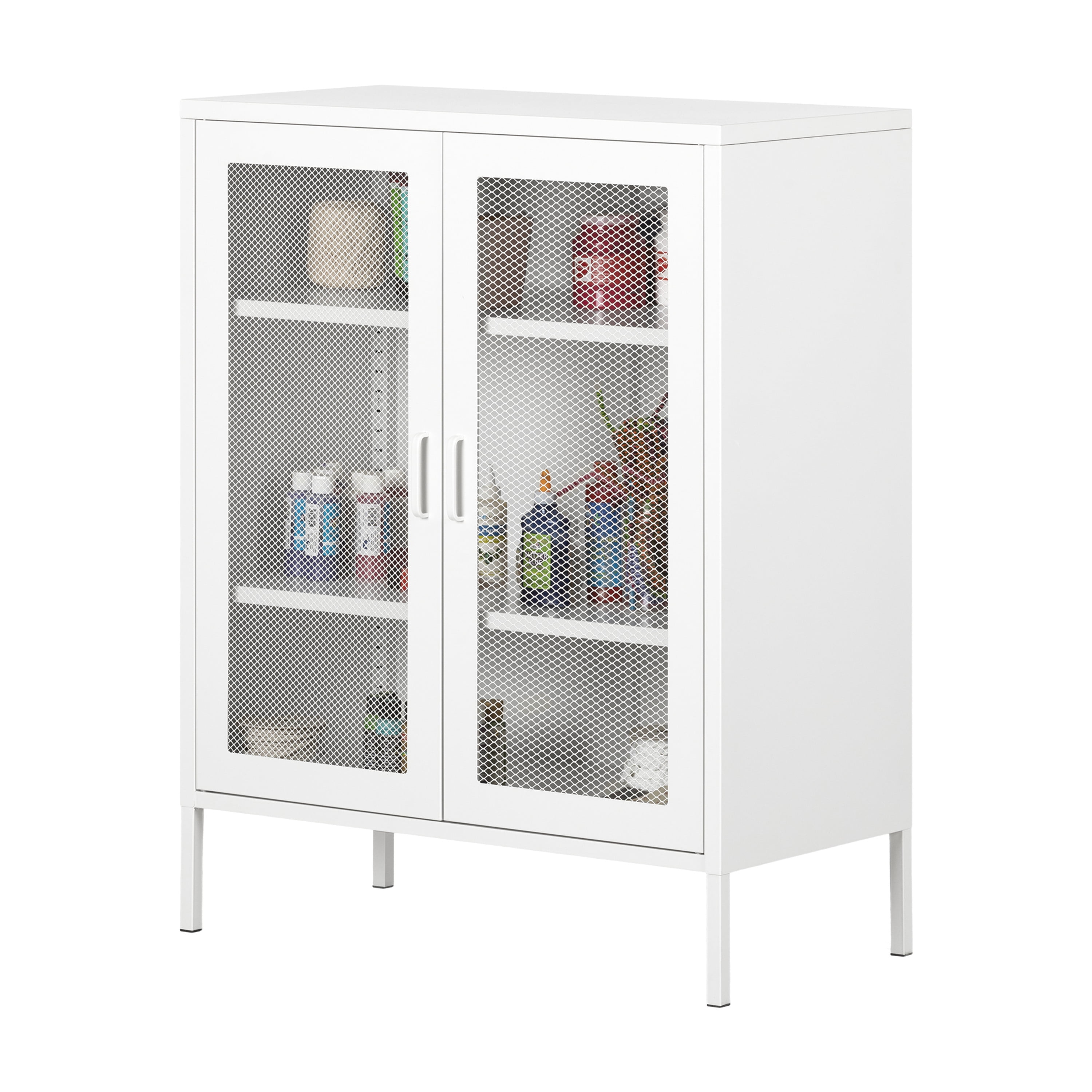 South Shore Crea, Contemporary Metal Mesh 2-Door Accent Cabinet, Pure White