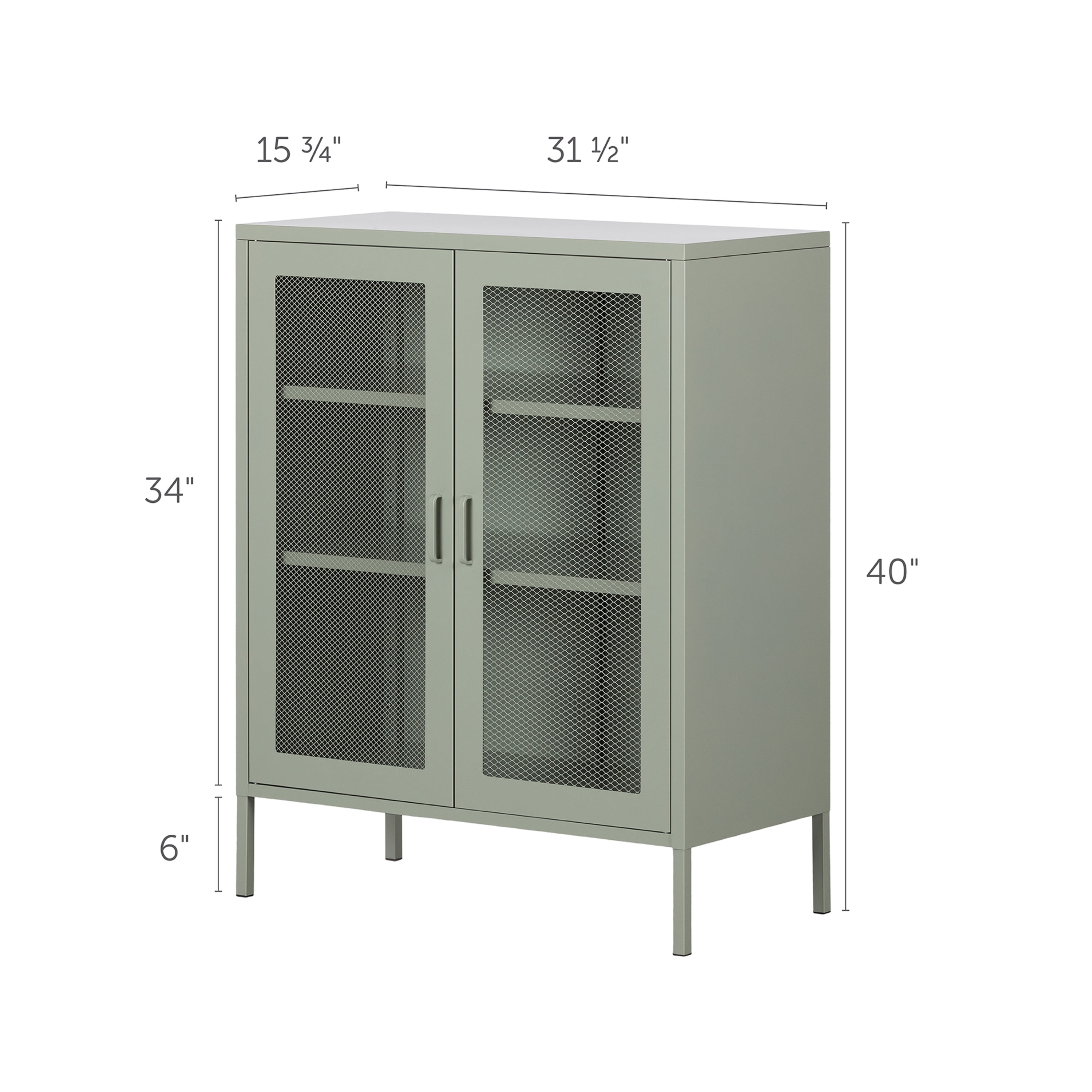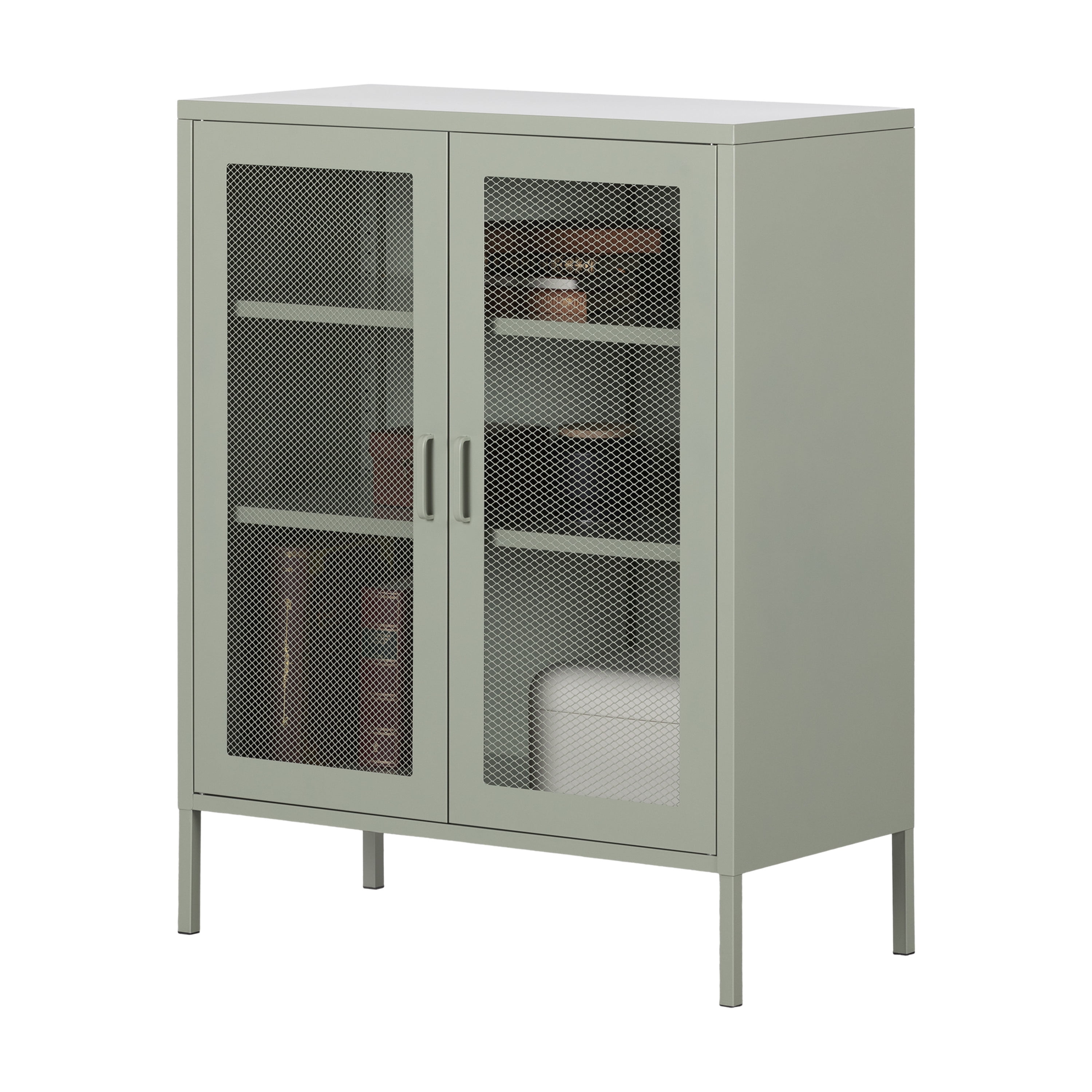 South Shore Crea, Contemporary Metal Mesh 2-Door Accent Cabinet, Sage Green