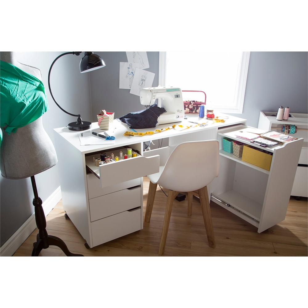 South Shore Crea Sewing Craft Table on Wheels, White