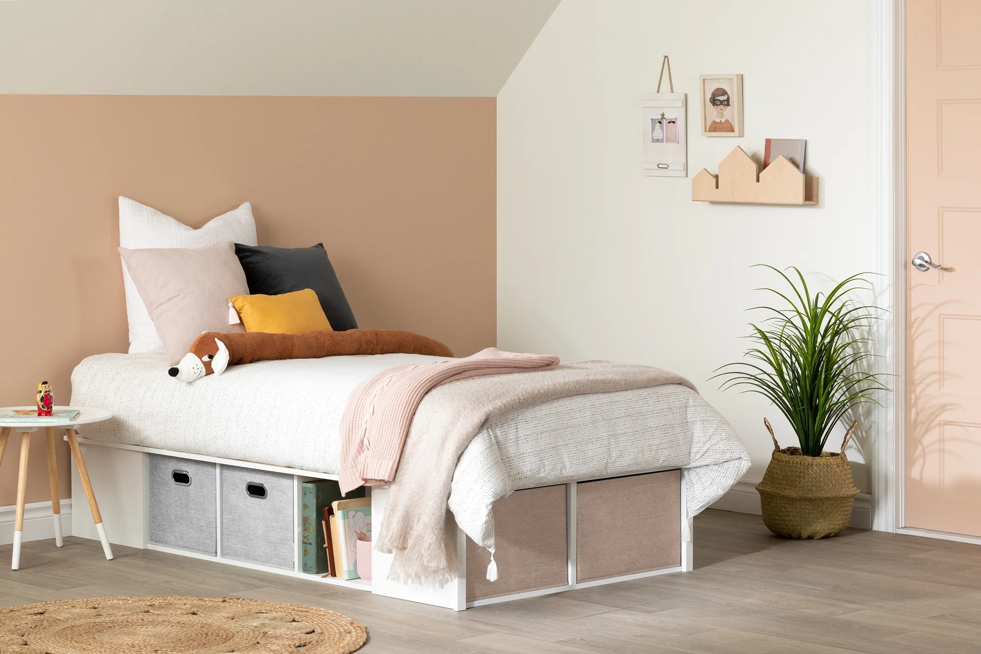 South Shore Flexible Twin Platform Bed with baskets, Pure White