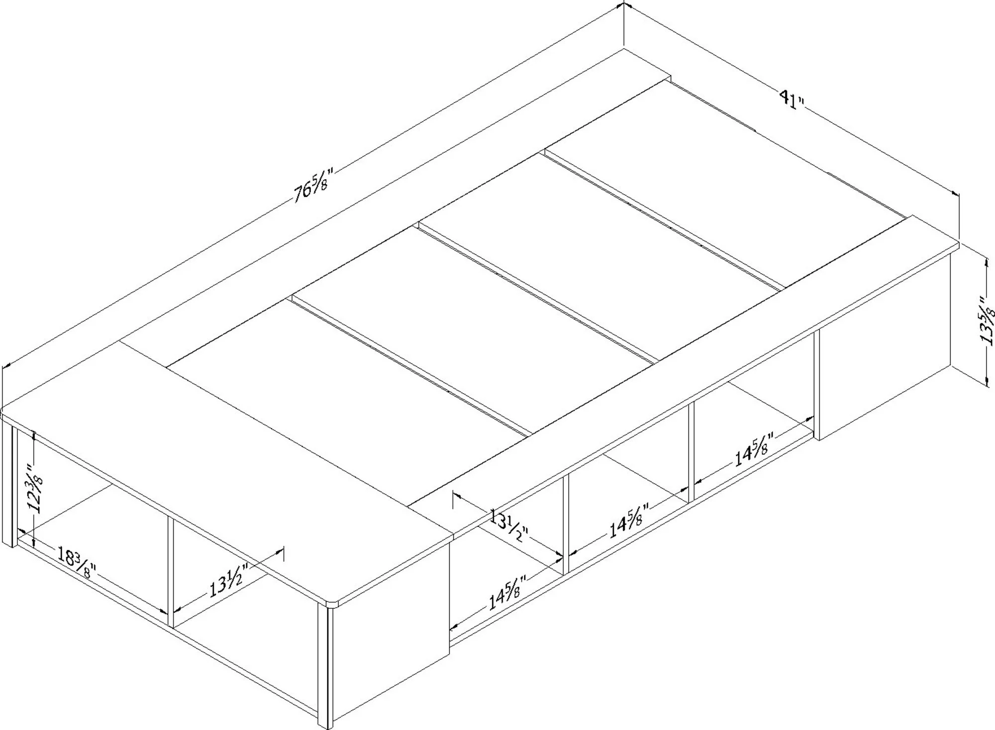 For REPLACING PARTS and HELP DURING ASSEMBLY, please contact us by phone at 1-800-290-0465, text message at 915-800-2833 (USA) (fees may apply), email at [email protected] or fill a part request form on . South Shore Flexible, Contemporary Platform Bed with baskets, Pure White INNOVATIVE DESIGN: Enjoy this unique bed featuring underbed shelving units and including fabric storage bins. AMPLE STORAGE: With several compartments available, storage options are endless! Mix and match the provided storage bins with baskets, and stack books or pillows in between. NO BOX SPRING OR FOUNDATION REQUIRED: Save money with this economic and classic bed- your mattress can be placed directly on top of the secure frame. South Shore beds can support a weight capacity of 250 lb for a twin size bed and 500 lb for a full, queen and king size bed Made in North America with non-toxic, laminated particleboard. 5 year quality warranty on furniture, 30-day satisfaction warranty on accessories. Any questions? Contact South Shore, available 7/7: 1-800-290-0465 or Assembly is required and tools are not included. All products come with a clear assembly document that will guide you through all steps. If you have any questions during the assembly do not hesitate to contact South Shore Furniture for immediate support. This item is shipped in 2 boxes. Box dimensions : 53.25″ (L) x 14.5″ (W) x 7.75″ (H) 90 lb – 74.5″ (L) x 16″ (W) x 3.75″ (H) 90 lb All our products meets or exceeds North American safety standards and our packaging are tested and certified to reduce the risk of damage during shipment. Clean with a damp cloth