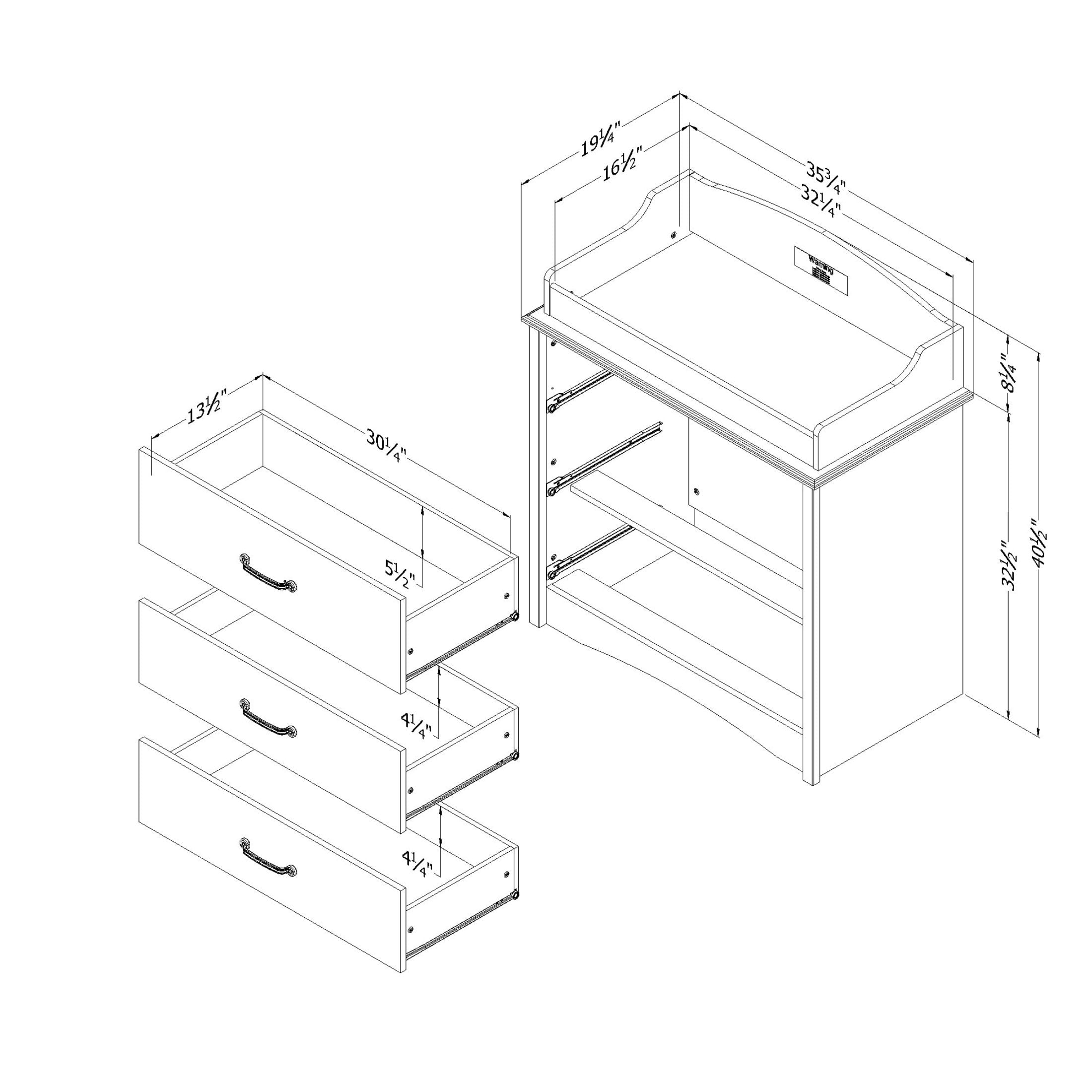 3 LARGE DRAWERS: Gather everything you need to take good care of your little love, so you have it all in one place! The three large drawers on metal slides will provide you with enough space for all those baby clothes and accessories CONTEMPORARY: We love the simplicity of this contemporary changing table, along with the vintage style of its beautiful metal handles and the kick plate SECURE: This changing table meets all safety standards in North America. And the fixed rim on its surface keeps the changing mat from moving, for even more safety 5-YEAR LIMITED WARRANTY: South Shore is proud to stand behind this 3-drawer changing table with an exclusive 5-year limited warranty. Shop with confidence knowing your purchase is always covered. EASY ASSEMBLY INSTRUCTIONS: All products come with a clear assembly document that will guide you through all steps. If you have any questions during the assembly do not hesitate to contact South Shore Furniture for immediate support.This item is shipped in 1 box, make sure to have a friend with you Wipe with a dry cloth BOX INFORMATION:Box #1 : 43.5″ D x 20.25″ W x 7.25″ H, 96.0 lb.