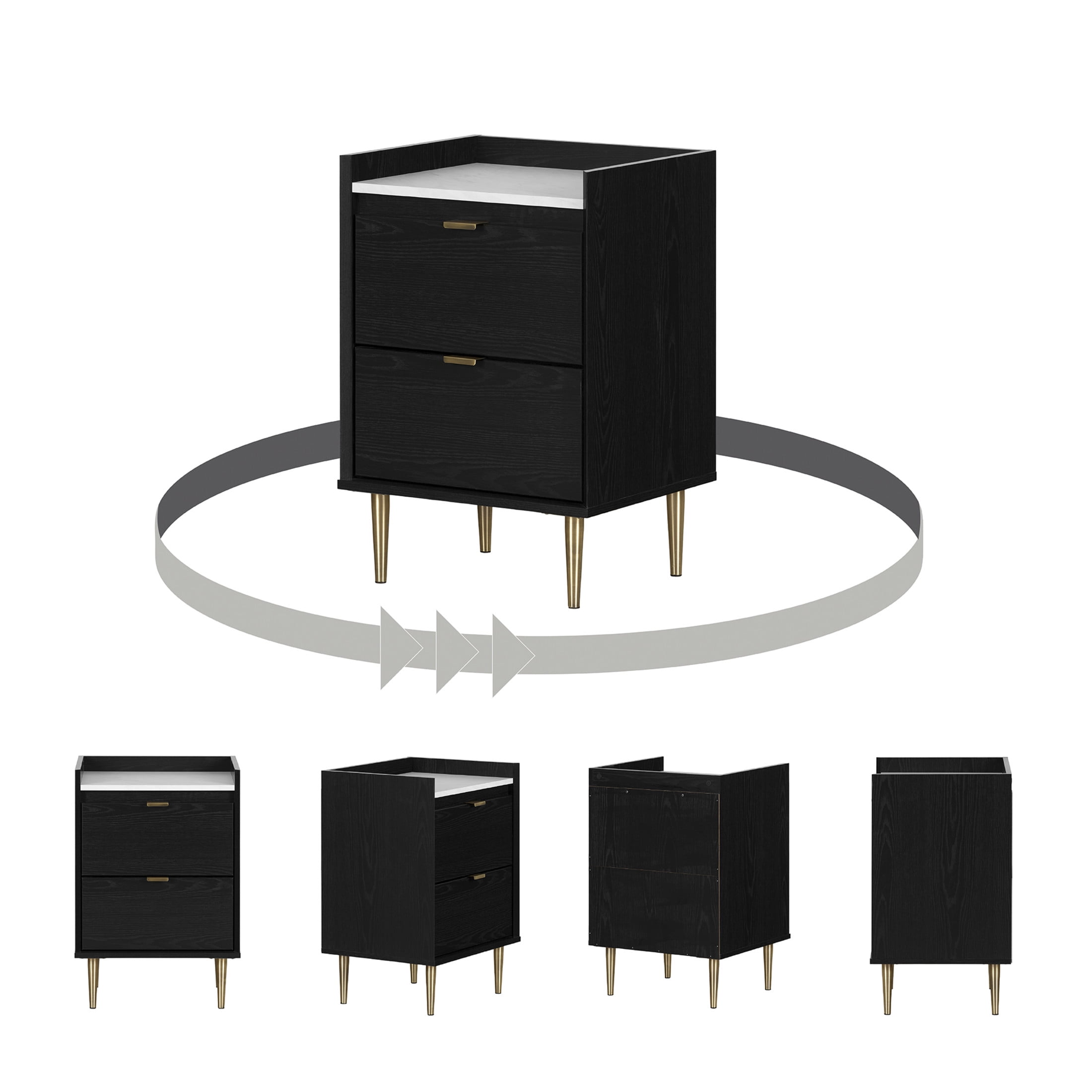 South Shore Hype, Mid-century Glam Nightstand, Black