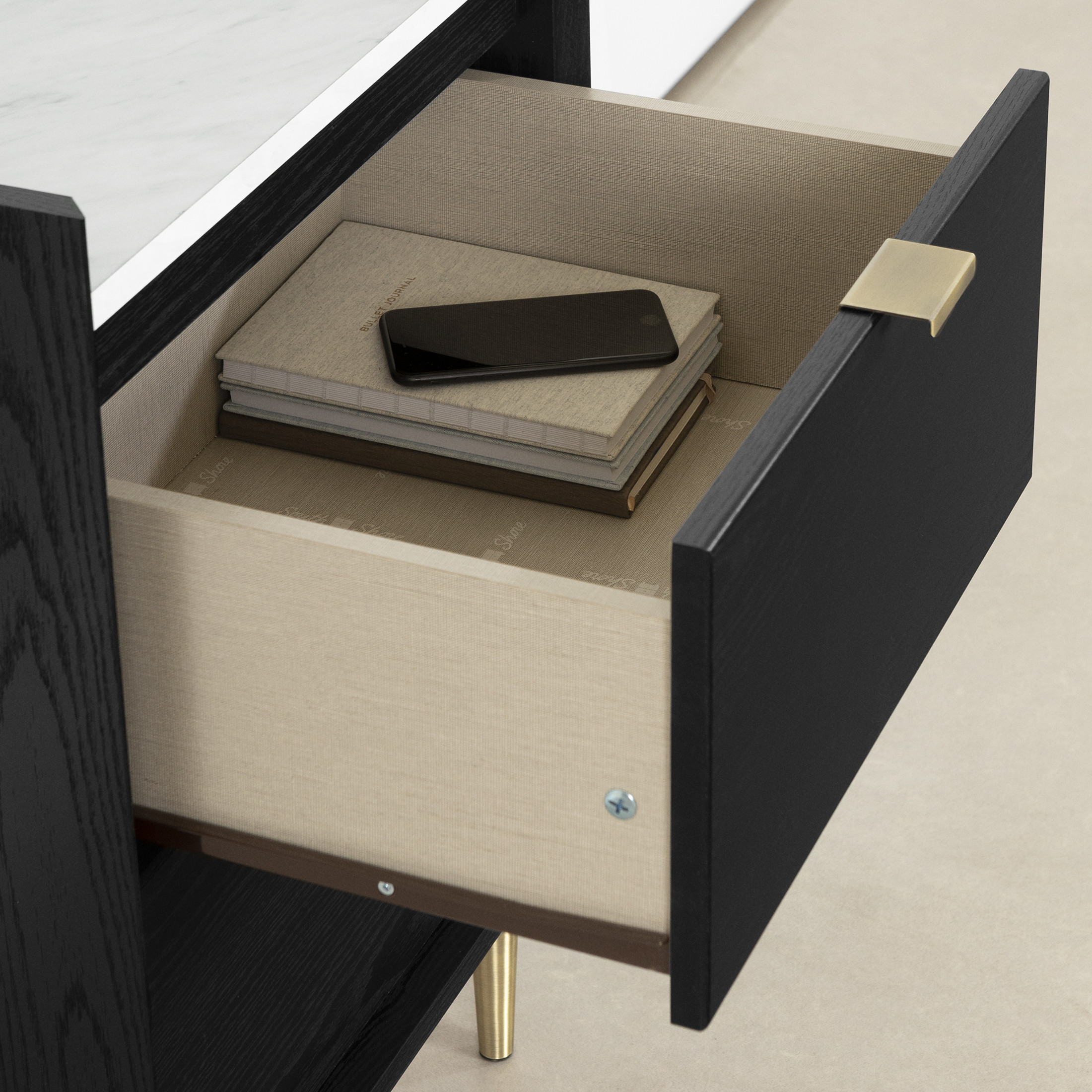 A nightstand for keeping all your essentials close to you Use this amazing, very practical nightstand to store all those items in your bedroom that haven’t yet found a home. The two large drawers on metal slides can hold your underwear, small blankets, or even books. You can also use the surface to keep your cellphone or a magazine close at hand. Add a stylish lamp, and you’ll have the perfect lighting for late-night reading sessions! A trendy glam side table Add some punch to your master bedroom with this glam-style nightstand! What we love most are the cute brass legs and delicate handles, which will give your decor a more chic and elegant look. The raised rim on the surface completes the design of this piece nicely, while keeping your things from falling on the floor.