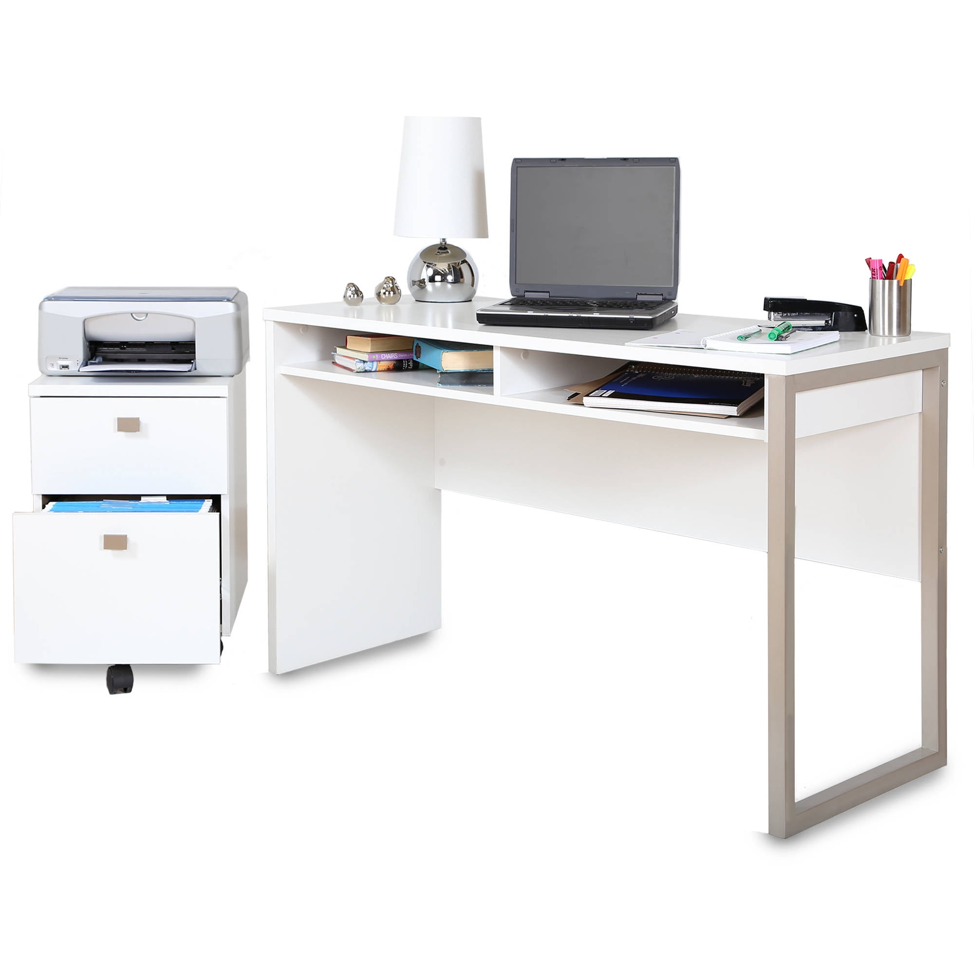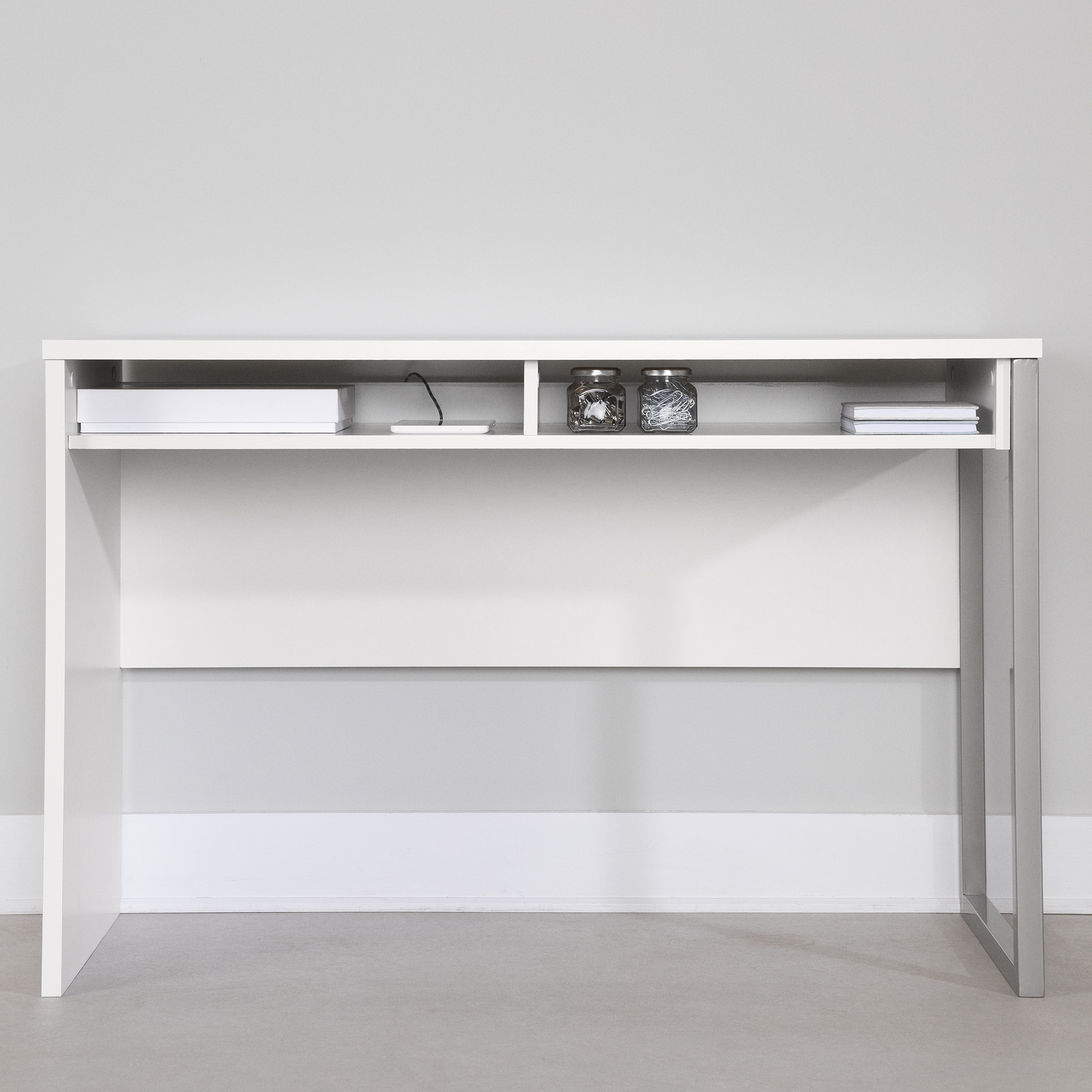 A nicely configured deskIt’s important to have a good computer desk when you’re trying to work efficiently from home. The surface of this piece, which is large enough for your laptop and second screen, gives you enough space to do your best work. You also get two small open storage spaces for keeping your pens, paper, and notebooks within easy reach. Your kids can also make use of this desk for homework or getting their school projects done.A versatile Contemporary lookYou’ll get a trendy, practical desk with a versatile Contemporary style that’ll fit into any decor. We especially like the contrast between the finish and the metal leg, which adds an elegant touch.