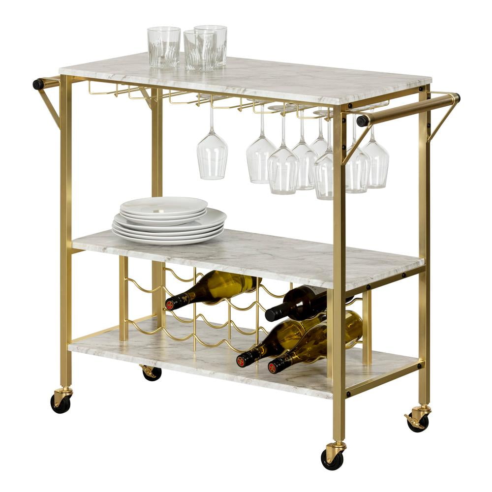 South Shore Maliza Bar Cart Faux Marble and Gold