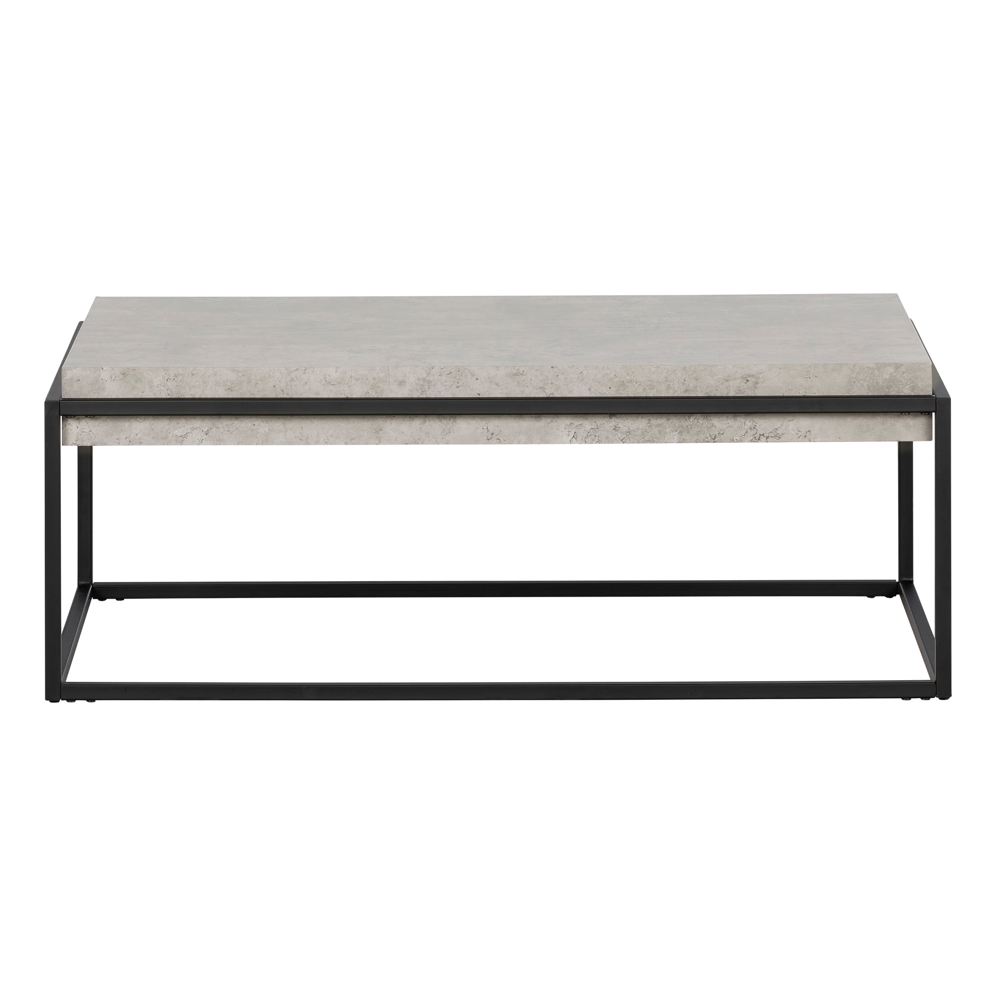 For REPLACING PARTS and HELP DURING ASSEMBLY, please contact us by phone at 1-800-290-0465, text message at 915-800-2833 (USA) (fees may apply), email at [email protected] or fill a part request form on . South Shore Mezzy, Urban Modern Modern Industrial Coffee Table, Concrete A DESIGNER LOOK COFFEE TABLE: Jazz up your living room! You’ll love the contrast between this almost oversize table top and the thinner metal frame. WATER RESISTANT TABLE TOP: The top of this coffee table is coated in a high-quality film, so it can handle small spills. LIGHT BUT STURDY: No worries about how much this table can hold – the maximum is 66 pounds. It’s a sturdy yet light piece that you can move around easily when changing the layout of the room. Made in China. Accessories not included. 1-year limited warranty. Any questions? Contact South Shore, available 7/7: 1-800-290-0465 or Assembly is required and tools are not included. All products come with a clear assembly document that will guide you through all steps. If you have any questions during the assembly do not hesitate to contact South Shore Furniture for immediate support. This item is shipped in 1 box. Box dimensions : 47.75″ (L) x 27.5″ (W) x 7.5″ (H) 49 lb All our products meets or exceeds North American safety standards and our packaging are tested and certified to reduce the risk of damage during shipment. Clean with a dry cloth