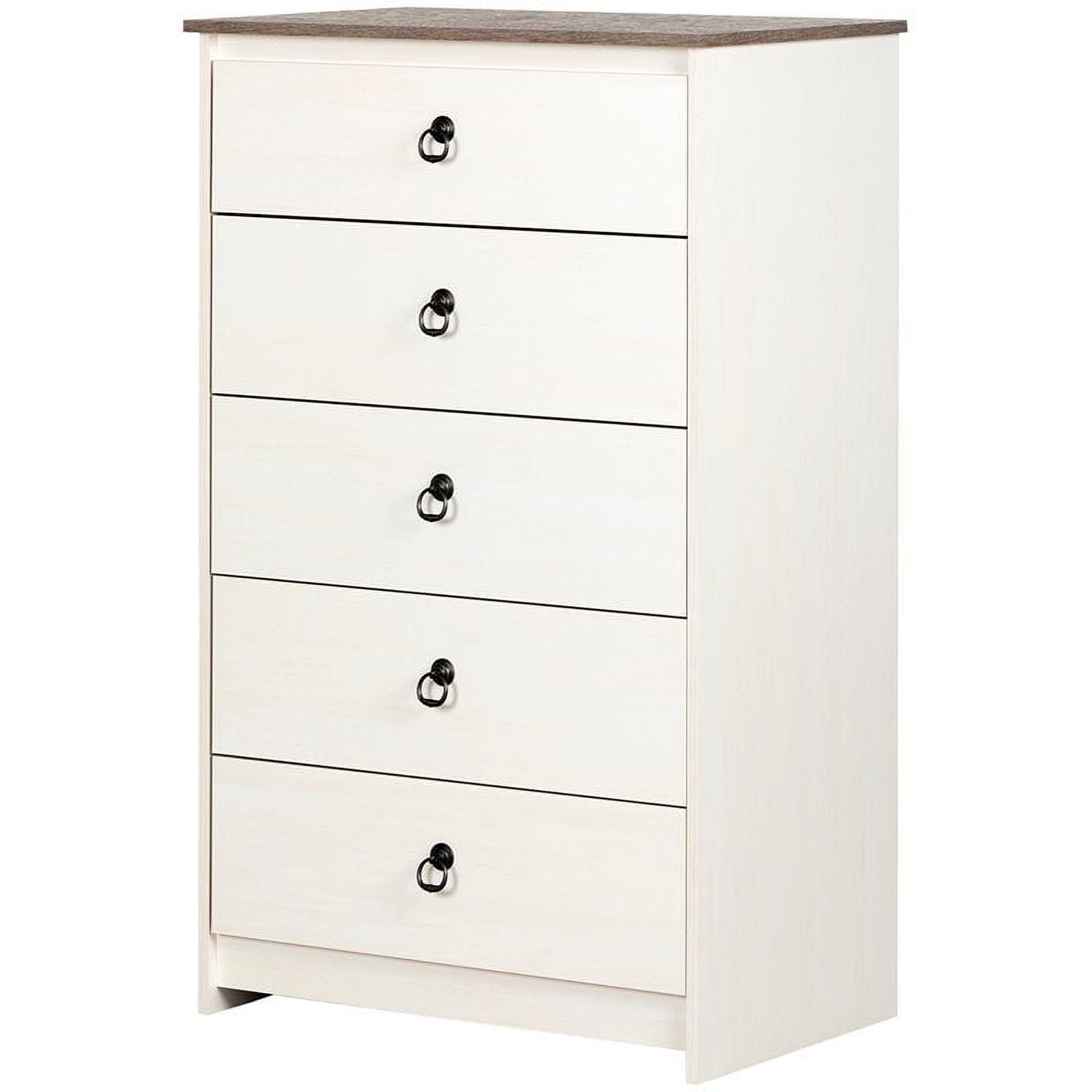 South Shore Plenny 5-Drawer Dresser White Wash and Weathered Oak