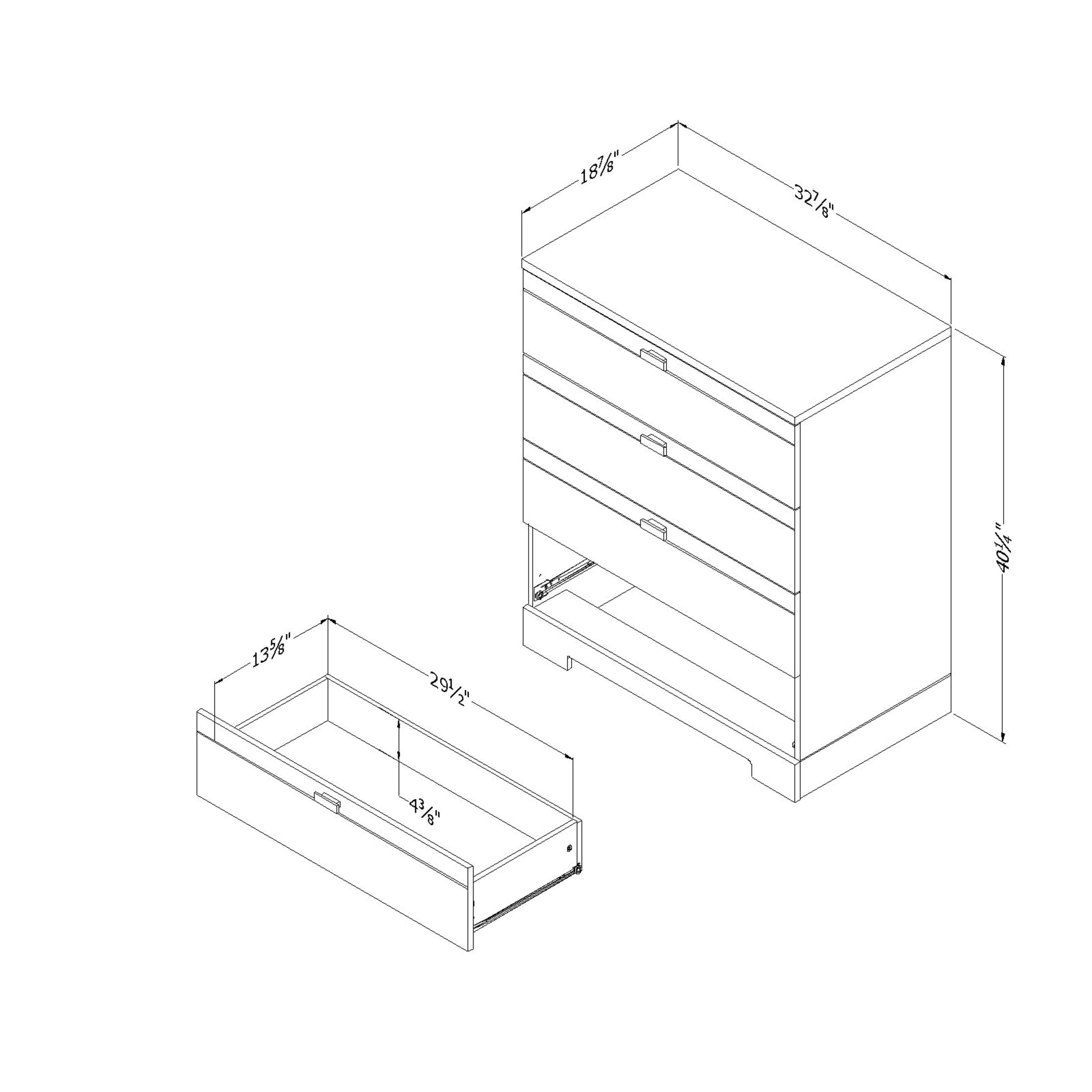 SIMPLICITY & ELEGANCE: This dresser features 4 spacious drawers, clean lines and cutout kickplate all of which make it a perfect addition to any bedroom. STORAGE MASTER: The dresser with its 4 deep drawers can fit clothes, toys, bedding, and more. The spacious and sturdy top can be used for decorations and accessories you need handy at all times. FITS EVERYWHERE: This dresser is not designed for bedrooms only. Make use of its modern lines to blend it with any furniture, in any room. SAFETY STANDARDS: The well-being of your family is important to us. That’s why our clothing storage units meet the tip-over safety standards required by the STURDY (Stop Tip-overs of Unstable, Risky Dressers on Youth) Act. 5-YEAR LIMITED WARRANTY: South Shore is proud to stand behind this 4-drawer chest with an exclusive 5-year limited warranty. Shop with confidence knowing your purchase is always covered. EASY ASSEMBLY INSTRUCTIONS: All products come with a clear assembly document that will guide you through all steps. If you have any questions during the assembly do not hesitate to contact South Shore Furniture for immediate support.This item is shipped in 1 box, make sure to have a friend with you Wipe with a dry cloth BOX INFORMATION:Box #1 : 46.25″ D x 20.0″ W x 7.75″ H, 112.0 lb.