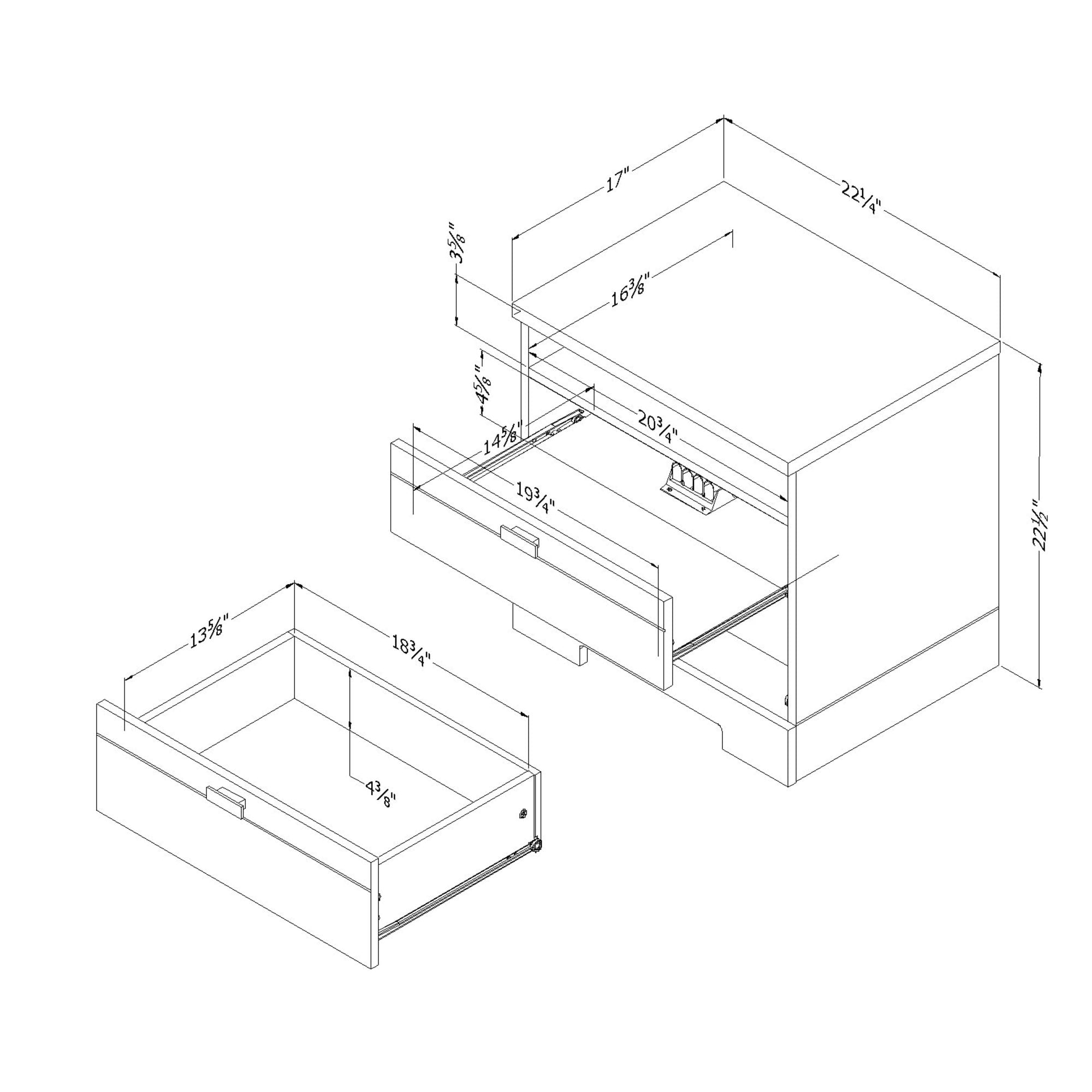Modern Bedside Furniture This nightstand with cutout kickplate will give your bedroom a contemporary and neutral look. In order to maximize bedside storage it features two drawers decorated with elegant metal handles and an open area at the top. With a sturdy table top suitable for a lamp, cell phone and glass of water, the bedroom cabinet has an open space in the back for easy wire management. Convenient Storage Featuring an open easy-access storage space ideal for bedside reading materials, the bedroom nightstand also includes 2 convenient and practical drawers with smooth metal drawer slides and durable metal handles. The shallower top drawer is the perfect place to store smaller personal items, while the slightly deeper bottom drawer is suitable for clothing or accessories.