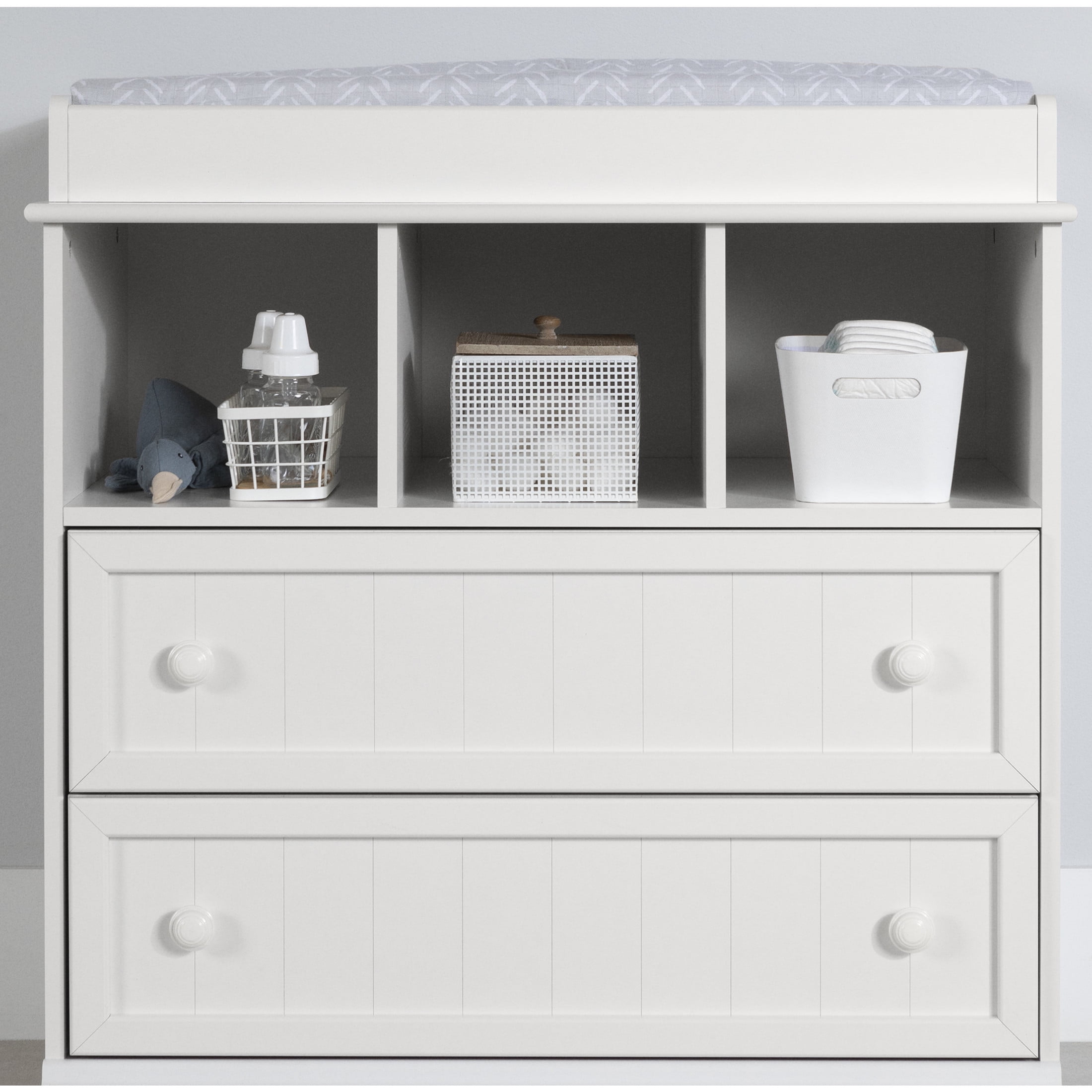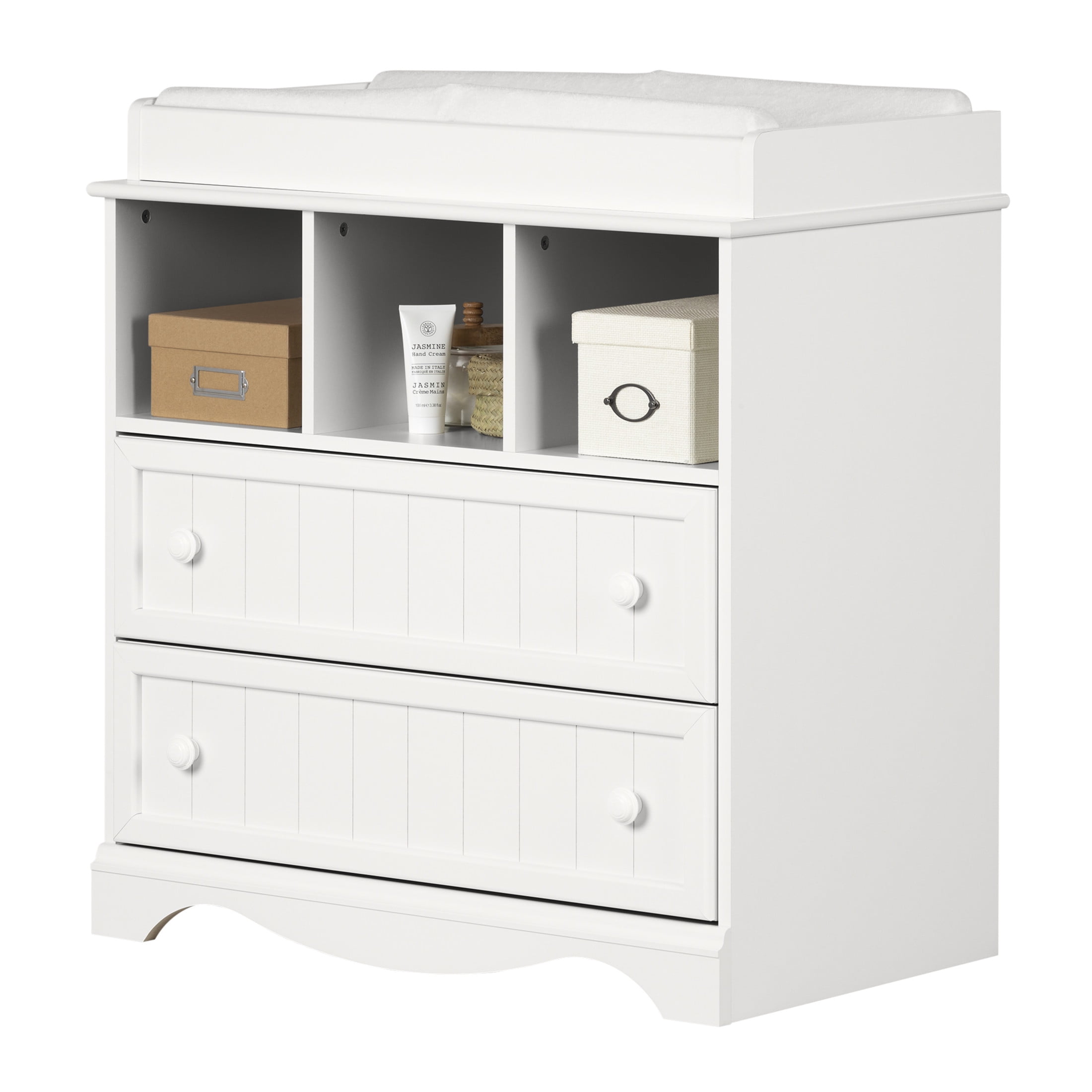 A COUNTRY CHIC-STYLE CHANGING TABLE: The curved cutout, drawer frames, decorative grooves, and wooden knob-style handles make this an oh-so-stylish unisex piece. You’ll have a warm and elegant decor! ACCESSIBLE STORAGE: Fill some nice-looking baskets with baby essentials and put them in the three open compartments, so you’ll be totally organized for every step of the diaper change process. You’ll also have space – in the two drawers – for clothes, pajamas, and blankets. METAL SLIDES: The drawers, installed on metal slides, will open and close gently. SAFETY STANDARDS: The well-being of your family is important to us. That’s why our clothing storage units meet the tip-over safety standards required by the STURDY (Stop Tip-overs of Unstable, Risky Dressers on Youth) Act. 5-YEAR LIMITED WARRANTY: South Shore is proud to stand behind this changing table with drawers and open storage with an exclusive 5-year limited warranty. Shop with confidence knowing your purchase is always covered. EASY ASSEMBLY INSTRUCTIONS: All products come with a clear assembly document that will guide you through all steps. If you have any questions during the assembly do not hesitate to contact South Shore Furniture for immediate support.This item is shipped in 1 box, make sure to have a friend with you Wipe with a dry cloth BOX INFORMATION:Box #1 : 41.75″ D x 21.0″ W x 7.25″ H, 100.0 lb.