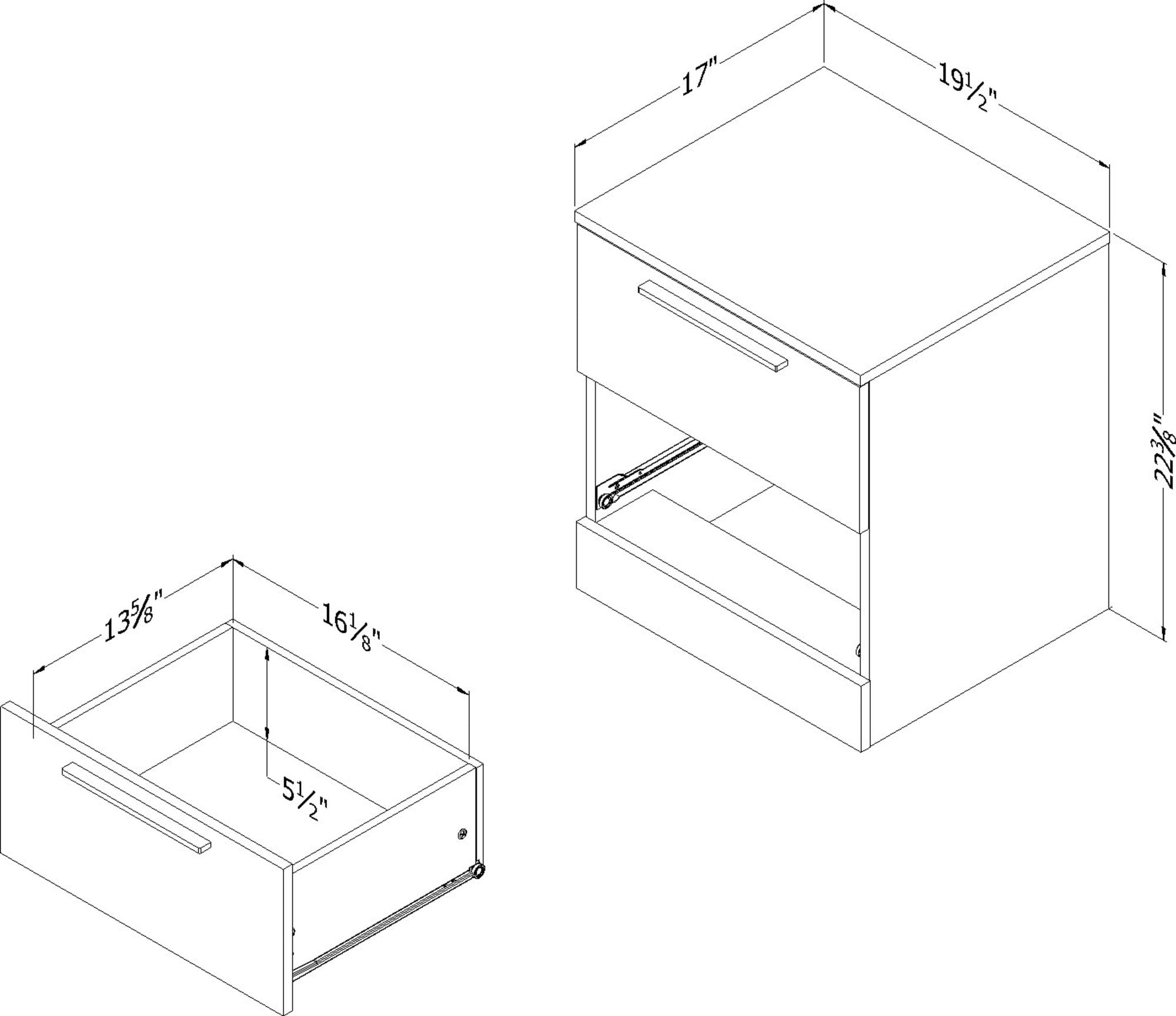 For REPLACING PARTS and HELP DURING ASSEMBLY, please contact us by phone at 1-800-290-0465, text message at 915-800-2833 (USA) (fees may apply), email at services@South Shore Furniture.com or fill a part request form on Shore Furniture/replacement-form South Shore Step One Essential 2-Drawer Nightstand Gray Oak A MODERN DESIGN: the clean lines and contrasting handles on this night stand will look fantastic in a minimalist, more contemporary style decor. SMOOTH DRAWER MOVEMENT: No risk of waking anyone up – both drawers have metal slides, so they don’t make any noise! STORAGE BY THE BED: the two large drawers give you all the space you need to keep your essentials near at hand, without having to stretch – a great feature when you’re relaxing! 5-YEAR LIMITED WARRANTY: South Shore is proud to stand behind this 2-drawer nightstand – end table with storage with an exclusive 5-year limited warranty. Shop with confidence knowing your purchase is always covered. EASY ASSEMBLY INSTRUCTIONS: All products come with a clear assembly document that will guide you through all steps. If you have any questions during the assembly do not hesitate to contact South Shore Furniture for immediate support.This item it shipped in 1 box Wipe with a dry cloth This product is made in North America with Laminated Particleboard BOX INFORMATION: Box #1 : 28.5″ D x 18″ W x 6.25″ H, 37 lb.