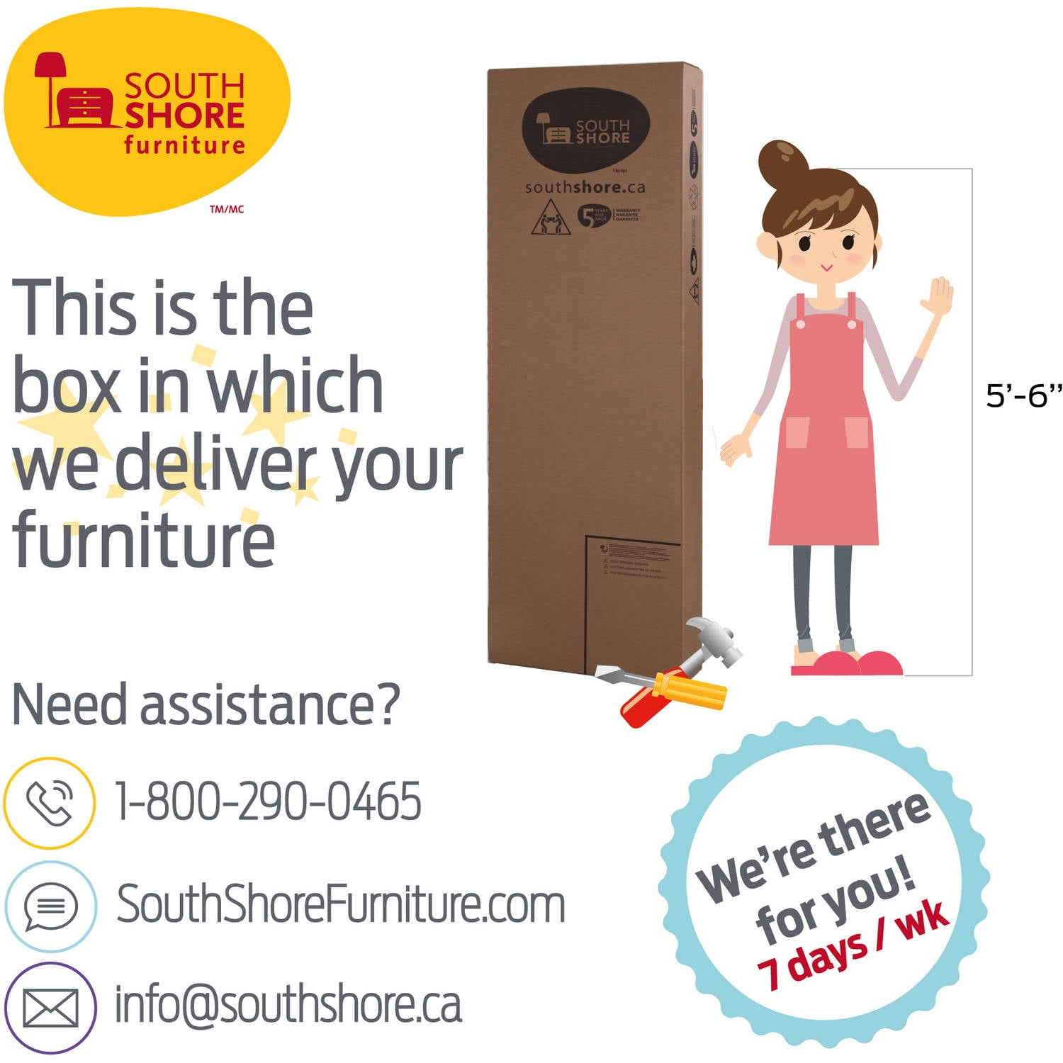 For REPLACING PARTS and HELP DURING ASSEMBLY, please contact us by phone at 1-800-290-0465, text message at 915-800-2833 (USA) (fees may apply), email at [email protected] or fill a part request form on . South Shore Step One, Contemporary Bookcase Headboard, Pure Black SLEEK & SIMPLE STYLE: This modern bookcase headboard blends minimalist style and functionality in a simple and elegant piece of bedroom furniture. STURDY BEDSIDE STORAGE: Providing 6 open spaces, a top shelf, and 2 side storage spaces on one side of the bed separated by a fixed shelf within easy reach A CLEAN APPROACH: Consolidate all your wires and cords to feed through one hole in the back panel. 1 hole in the back panel for easy wire management Made in North America with non-toxic, laminated particleboard. Bed, mattress, bedding and other accessories not included. 5-year limited warranty. Any questions? Contact South Shore, available 7/7: 1-800-290-0465 or Assembly is required and tools are not included. All products come with a clear assembly document that will guide you through all steps. If you have any questions during the assembly do not hesitate to contact South Shore Furniture for immediate support. This item is shipped in 1 box. Box dimensions : 61″ (L) x 20.25″ (W) x 3.5″ (H) 69 lb All our products meets or exceeds North American safety standards and our packaging are tested and certified to reduce the risk of damage during shipment. Clean with a dry cloth
