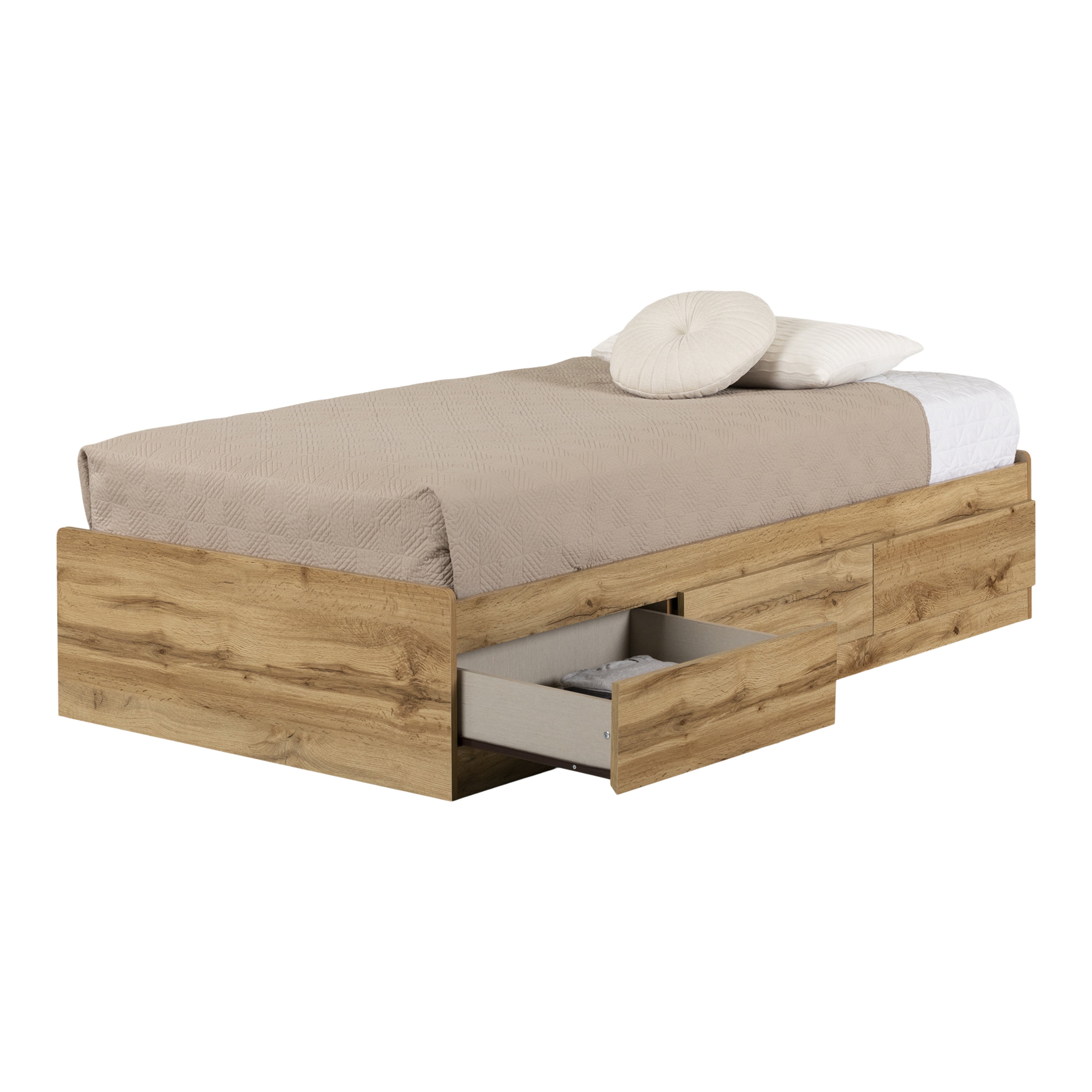South Shore Tassio, Farmhouse Bed, Nordik Oak SMART STORAGE: The 3 large storage drawers under the bed are perfect for storing clothes out of season! No matter how you place this bed in the room, you can easily access its drawers. LOOK FARMHOUSE: Choose this mates bed for its subtle cottage style that your child will love. Plus, its rounded corners ensure greater safety for your little ones. NO BOXSPRING REQUIRED: This bed does not require the use of a boxspring. More money in your pocket! South Shore beds can support a weight capacity of 250 lb for a twin size bed and 500 lb for a full, queen and king size bed Made in Canada. Mattress and accessories not included. 5-year limited warranty. Assembly is required and tools are not included. All products come with a clear assembly document that will guide you through all steps. If you have any questions during the assembly do not hesitate to contact South Shore Furniture for immediate support. This item is shipped in 1 box. Box dimensions : 85″ (L) x 20.75″ (W) x 4.5″ (H) 137 lb All our products meets or exceeds North American safety standards and our packaging are tested and certified to reduce the risk of damage during shipment. Wipe with a dry cloth.