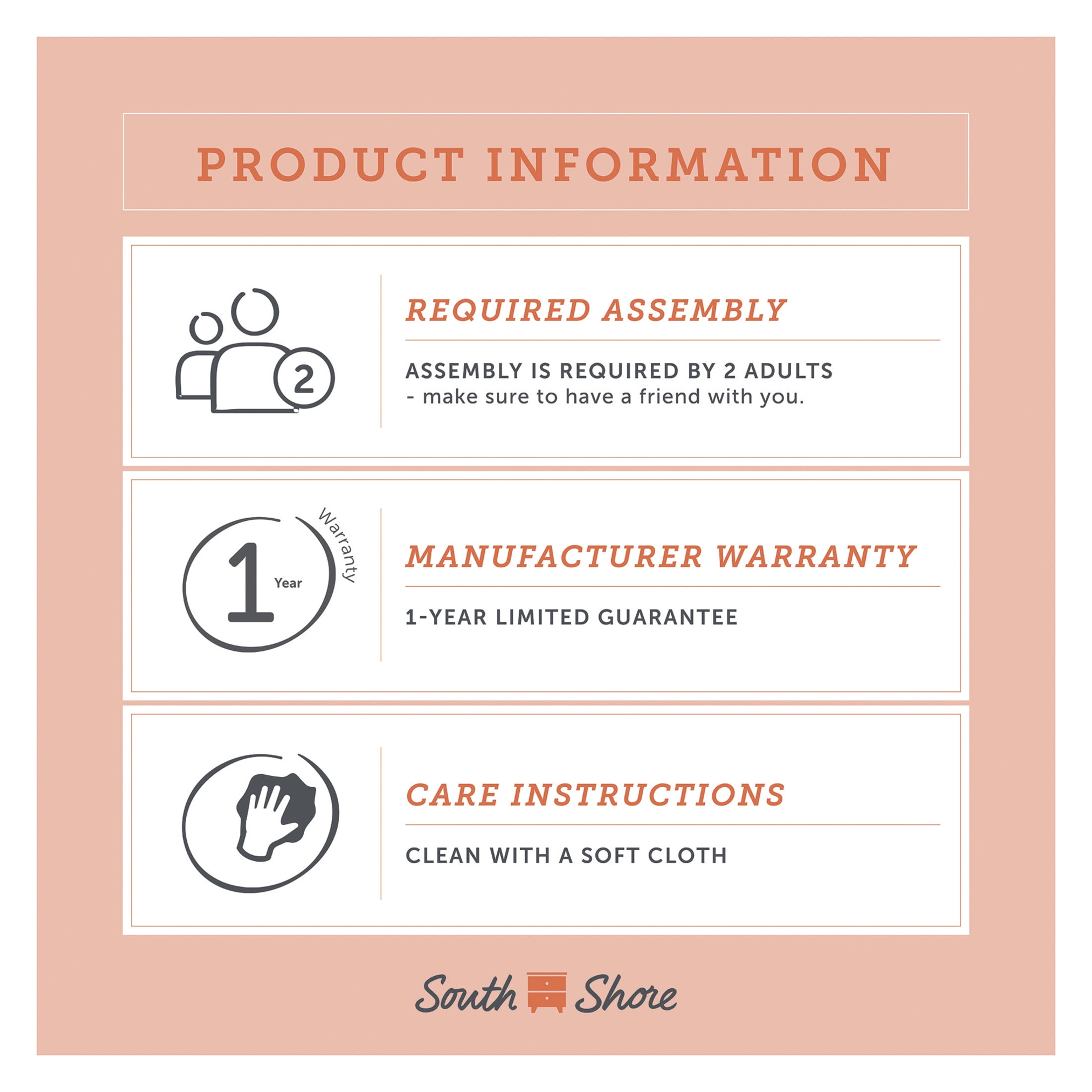 CHEST WITH SIX DRAWERS: Use the compartments to store your clothes. It’s the add-on you were looking for as a companion piece for your wardrobe. DRAWER CAPACITY UP TO 25 POUNDS: Each drawer in this piece has sturdy metal slides, so it’s designed to hold 25 pounds. A LARGE SURFACE FOR THINGS YOU USE EVERY DAY: The top of this chest gives you lots of space for the things you use all the time. It’s ideal for keeping everything within reach, especially when you’re running late! SAFETY STANDARDS: The well-being of your family is important to us. That’s why our clothing storage units meet the tip-over safety standards required by the STURDY (Stop Tip-overs of Unstable, Risky Dressers on Youth) Act. 5-YEAR LIMITED WARRANTY: South Shore is proud to stand behind this 6-drawer dresser with an exclusive 5-year limited warranty. Shop with confidence knowing your purchase is always covered. EASY ASSEMBLY INSTRUCTIONS: All products come with a clear assembly document that will guide you through all steps. If you have any questions during the assembly do not hesitate to contact South Shore Furniture for immediate support.This item is shipped in 1 box, make sure to have a friend with you Wipe with a dry cloth BOX INFORMATION:Box #1 : 59.25″ D x 20.0″ W x 7.0″ H, 133.0 lb.