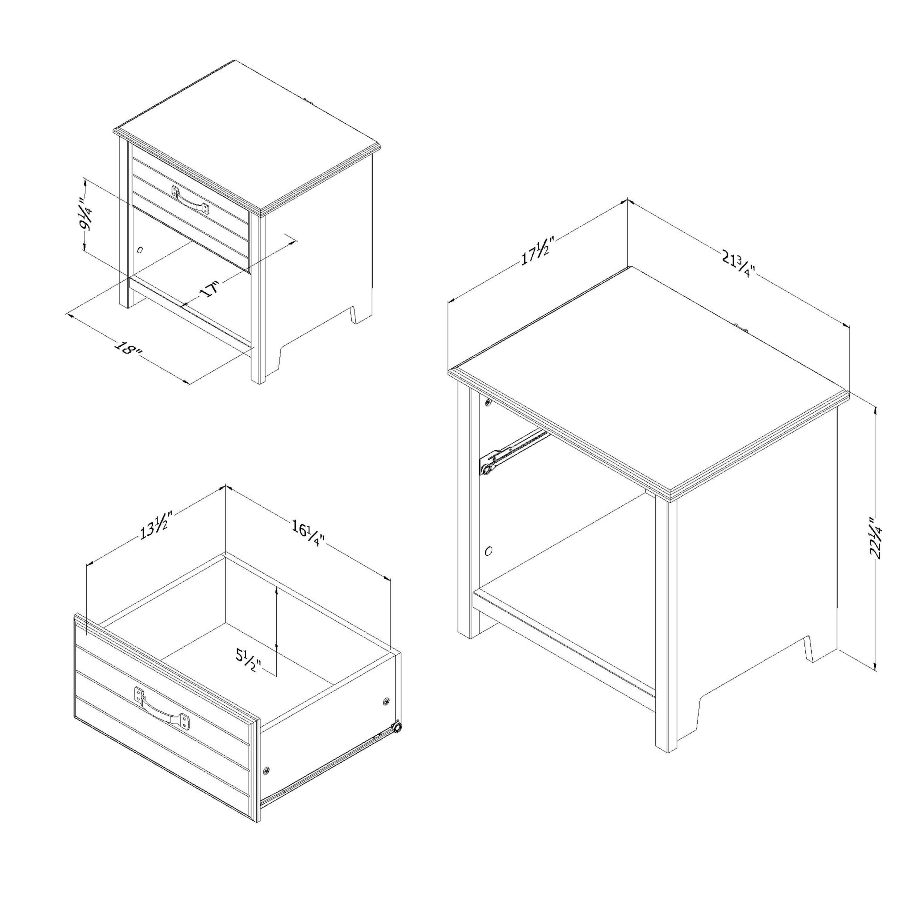 For REPLACING PARTS and HELP DURING ASSEMBLY, please contact us by phone at 1-800-290-0465, text message at 915-800-2833 (USA) (fees may apply), email at [email protected] or fill a part request form on . South Shore Ulysses, Traditional 1-Drawer Nightstand, Winter Oak OPEN AND CLOSED STORAGE: Featuring 1 roomy drawer, on metal slides, and an open space below, you can store items out of sight as well as tall books or a vase. SIMPLE TRADITIONAL STYLE: The clean lines, grooved drawer, and sturdy metal handle detail make this nightstand a unique focal point. VERSATILE USE: This classic nightstand can live anywhere in the home and will fit seamlessly with any interior theme. Made in North America. Accessories not included. 5-year limited warranty. Any questions? Contact South Shore, the manufacturer, available 7/7 by phone, email or chat Assembly is required and tools are not included. All products come with a clear assembly document that will guide you through all steps. If you have any questions during the assembly do not hesitate to contact South Shore Furniture for immediate support. This item is shipped in 1 box. Box dimensions : 28.25″ (L) x 18.5″ (W) x 5.5″ (H) 34 lb All our products meets or exceeds North American safety standards and our packaging are tested and certified to reduce the risk of damage during shipment. Wipe with a dry cloth.