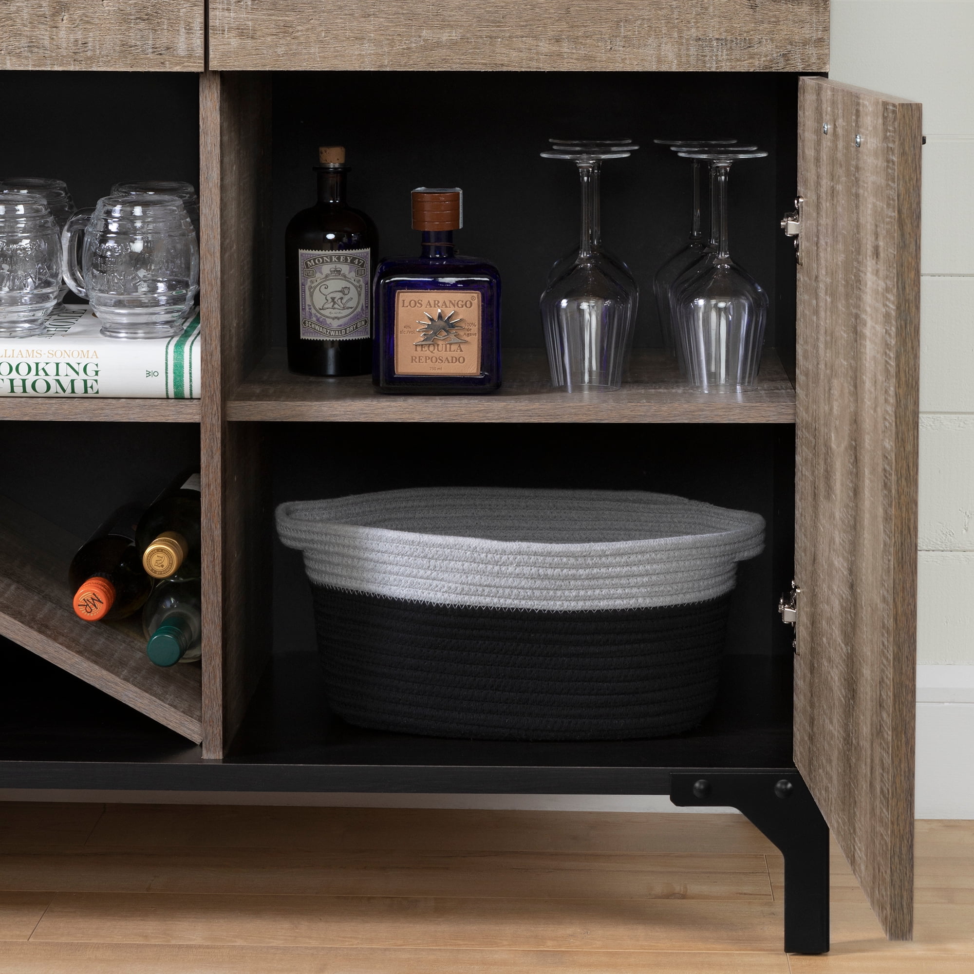 South Shore Valet Wine Rack Buffet in Weathered Oak and Ebony