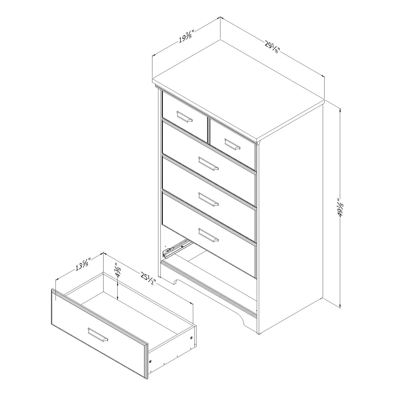 For REPLACING PARTS and HELP DURING ASSEMBLY, please contact us by phone at 1-800-290-0465, text message at 915-800-2833 (USA) (fees may apply), South Shore Versa 5-Drawer Chest Winter OakADDITIONAL STORAGE: Providing a set of 5 drawers perfect for clothes, accessories or linens, this dresser offers spacious storage with a compact footprint.TRADITIONAL & CLASSIC: With beveled edges, a curved kickboard, and straight metal handles, this dresser will be the main focus of any room.MULTI-FUNCTIONAL DRESSER: Designed with storage and style in mind, this dresser can be used to store a variety of items anywhere in your home. Shop with confidence knowing your purchase is always covered.EASY ASSEMBLY INSTRUCTIONS: All products come with a clear assembly document that will guide you through all steps. If you have any questions during the assembly do not hesitate to contact South Shore Furniture for immediate support.This item is shipped in 1 box, make sure to have a friend with youWipe with a dry clothThis product is made in North America with Laminated ParticleboardBOX INFORMATION:Box #1 : 55″ D x 20.5″ W x 7″ H, 108 lb.