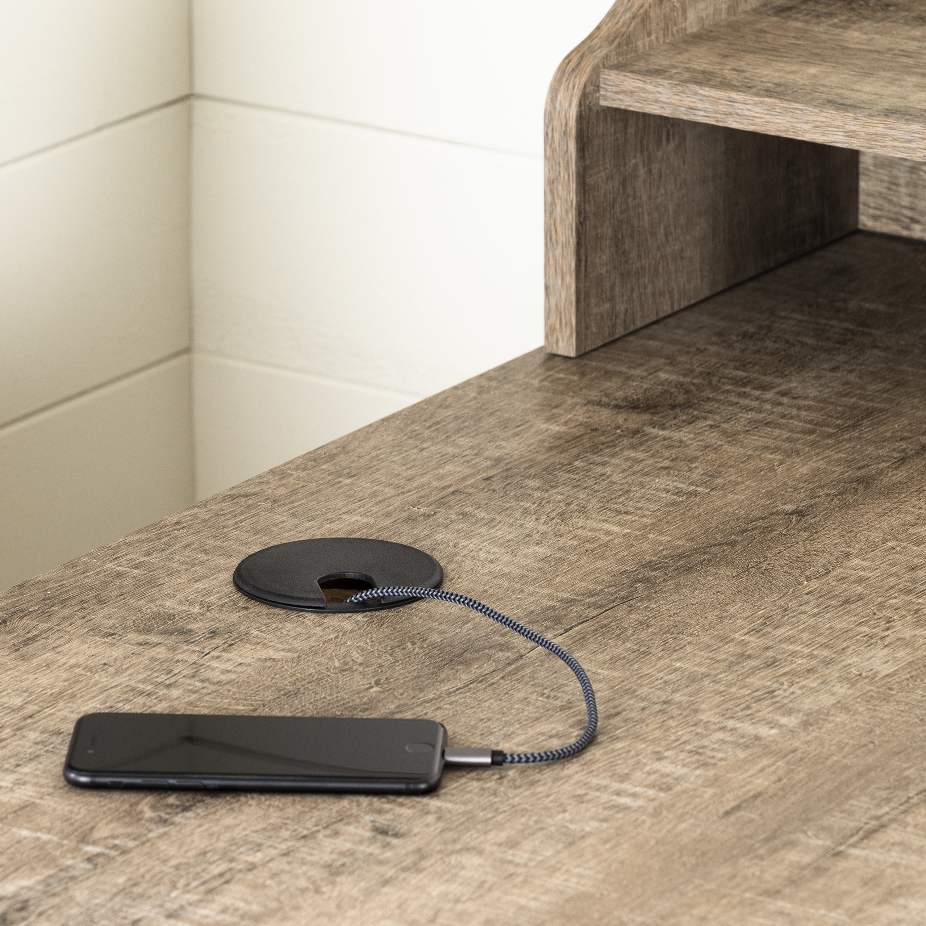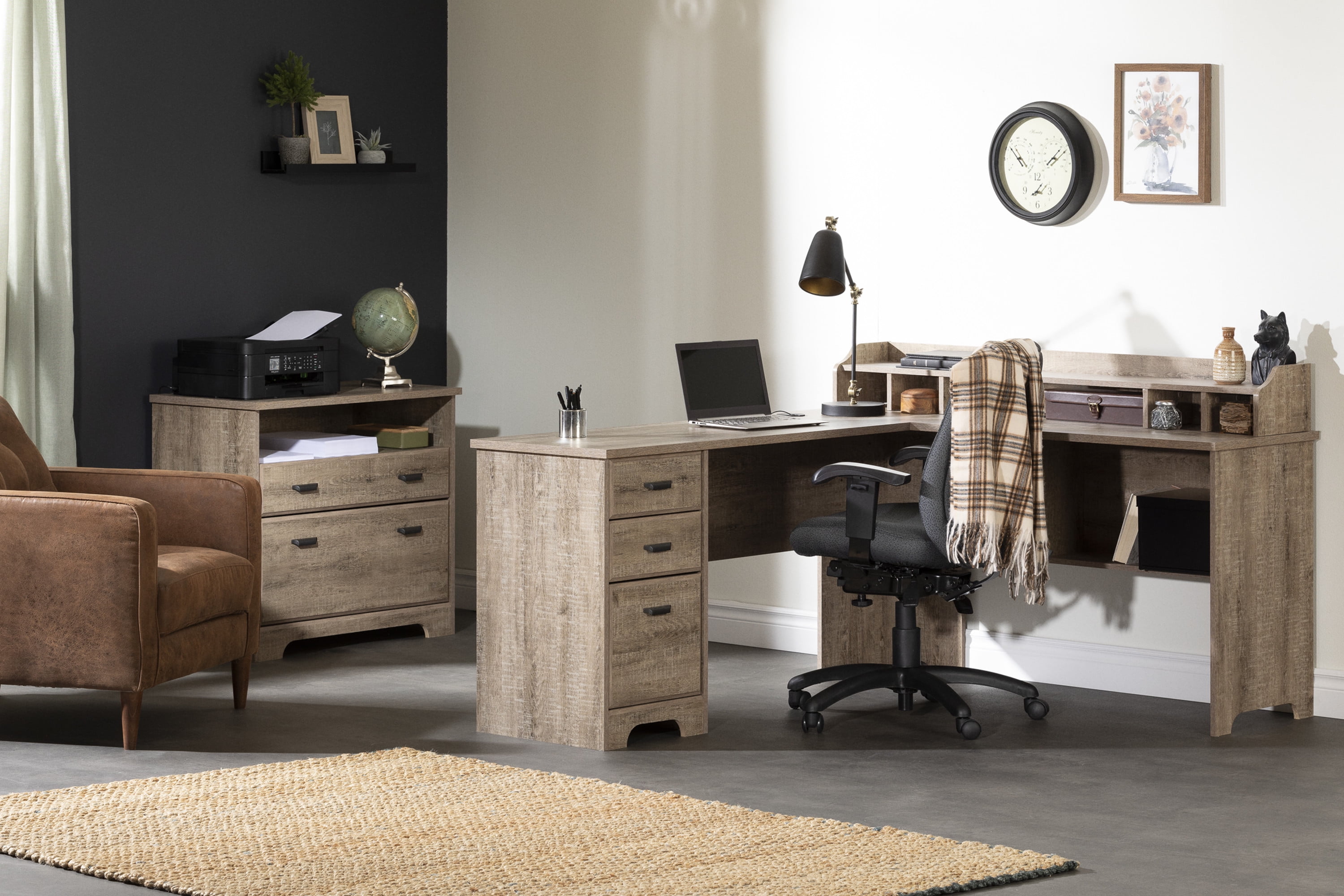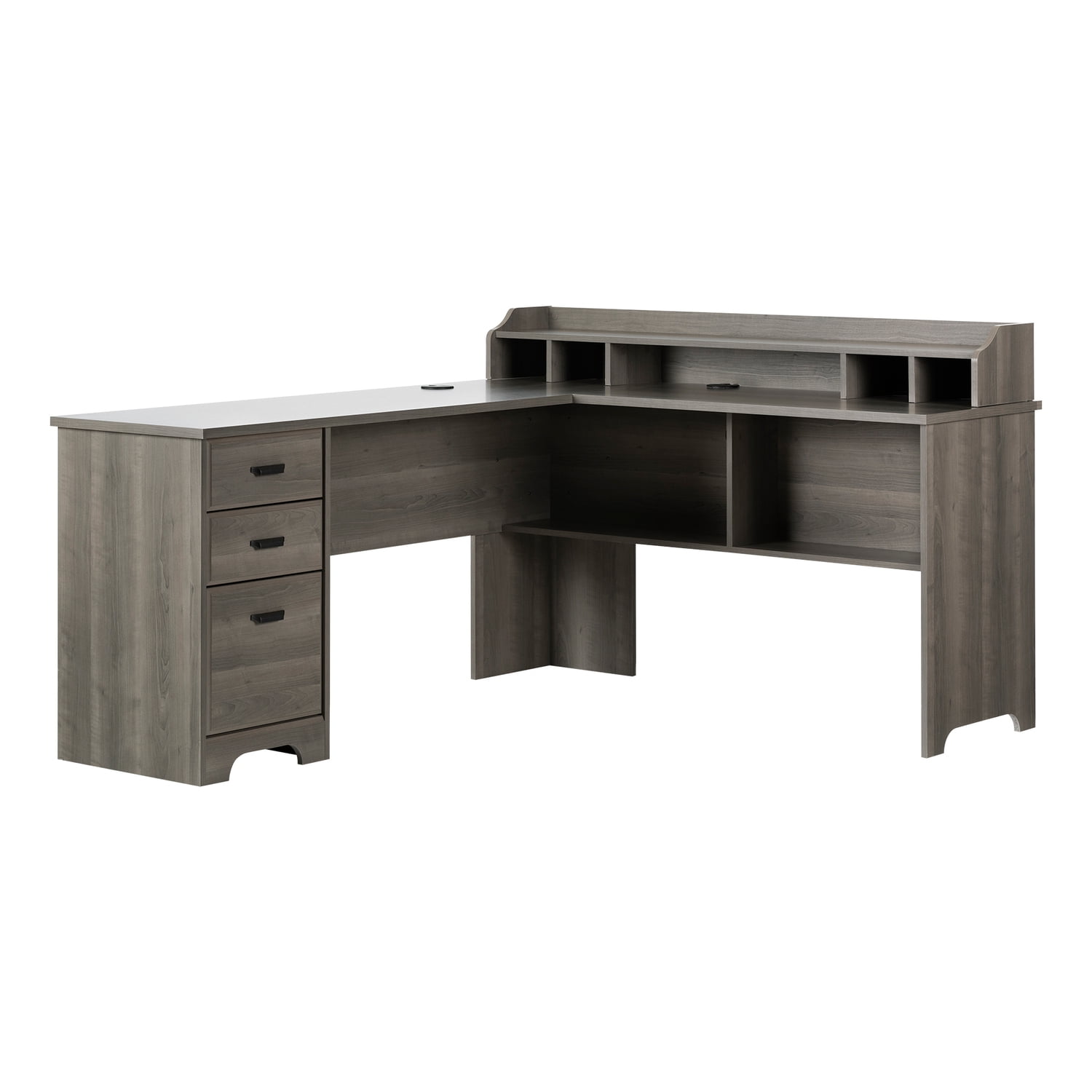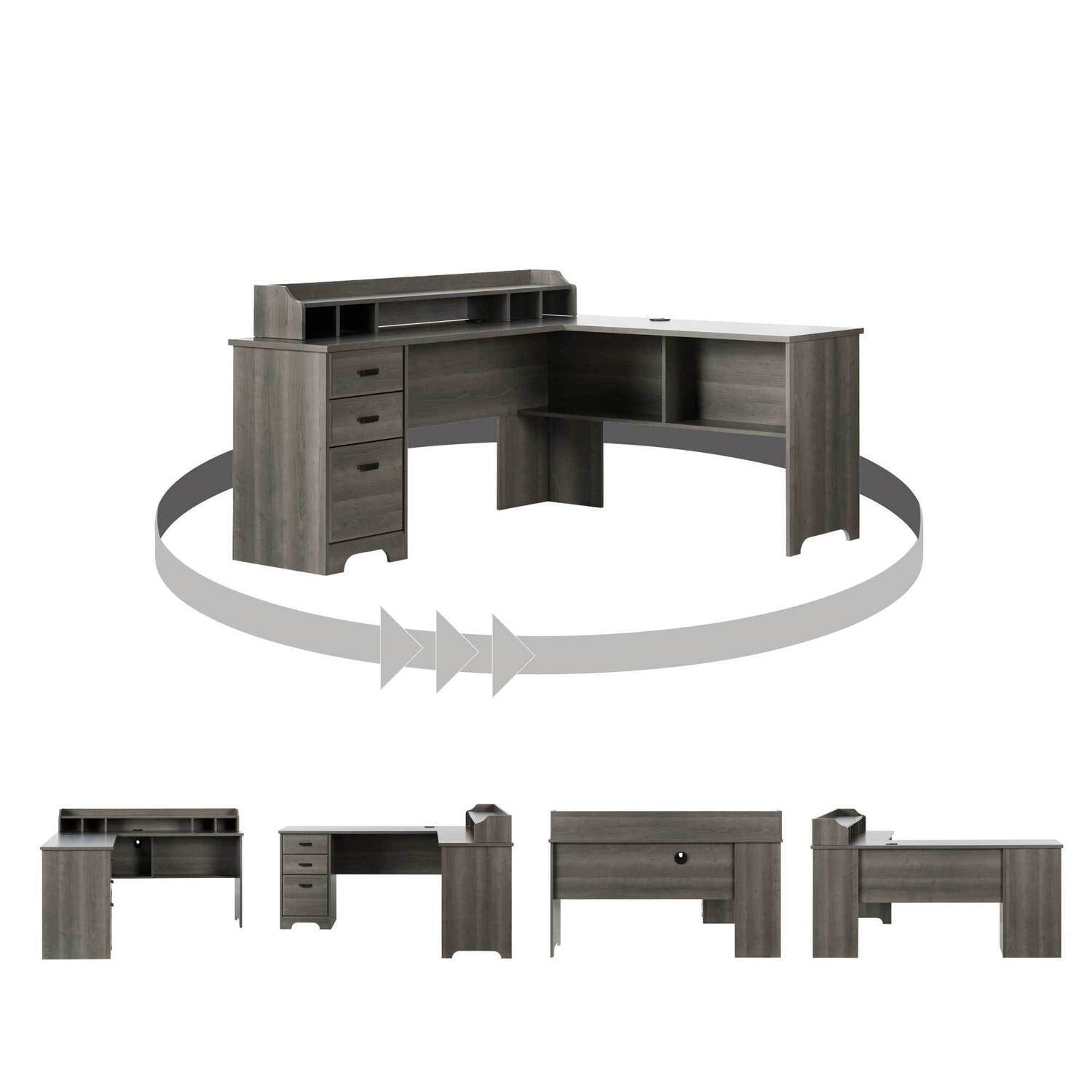 For REPLACING PARTS and HELP DURING ASSEMBLY, please contact us by phone at 1-800-290-0465, text message at 915-800-2833 (USA) (fees may apply), email at [email protected] or fill a part request form on South Shore Versa L-Shaped Desk Weathered OakT HREE LARGE DRAWERS: store your work materials in the two upper drawers and file your important papers in the drawer below for optimal storage. All of these drawers are mounted on metal slides.HOLE FOR PASSING CORDS THROUGH: no chance of tangled cords being in full view! You can keep them well out of sight by passing them through the hole in the surface and clamping them together (hardware provided).REMOVABLE SURFACE HUTCH: we added a hutch with five open spaces – perfect for keeping envelopes and small work tools. It’s removable, which means you can always decide to remove it from the desk if you prefer.TRADITIONAL STYLE: we like the kick plate and metal handles on this Traditional style desk which will last through the years. 5-YEAR LIMITED WARRANTY: South Shore is proud to stand behind this l-shaped desk with removable hutch with an exclusive 5-year limited warranty. Shop with confidence knowing your purchase is always covered.EASY ASSEMBLY INSTRUCTIONS: All products come with a clear assembly document that will guide you through all steps. If you have any questions during the assembly do not hesitate to contact South Shore Furniture for immediate support.This item is shipped in 1 boxWipe with a dry clothThis product is made in North America with Laminated ParticleboardBOX INFORMATION:Box #1 : 0″ D x 0″ W x 0″ H, 0 lb.Box #2 : 73.75″ D x 20.25″ W x 4″ H, 87 lb.