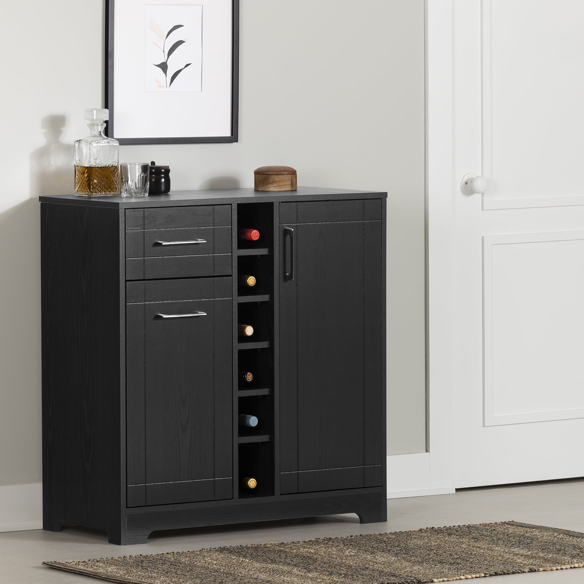South Shore Vietti Bar Cabinet with Storage, Black Oak