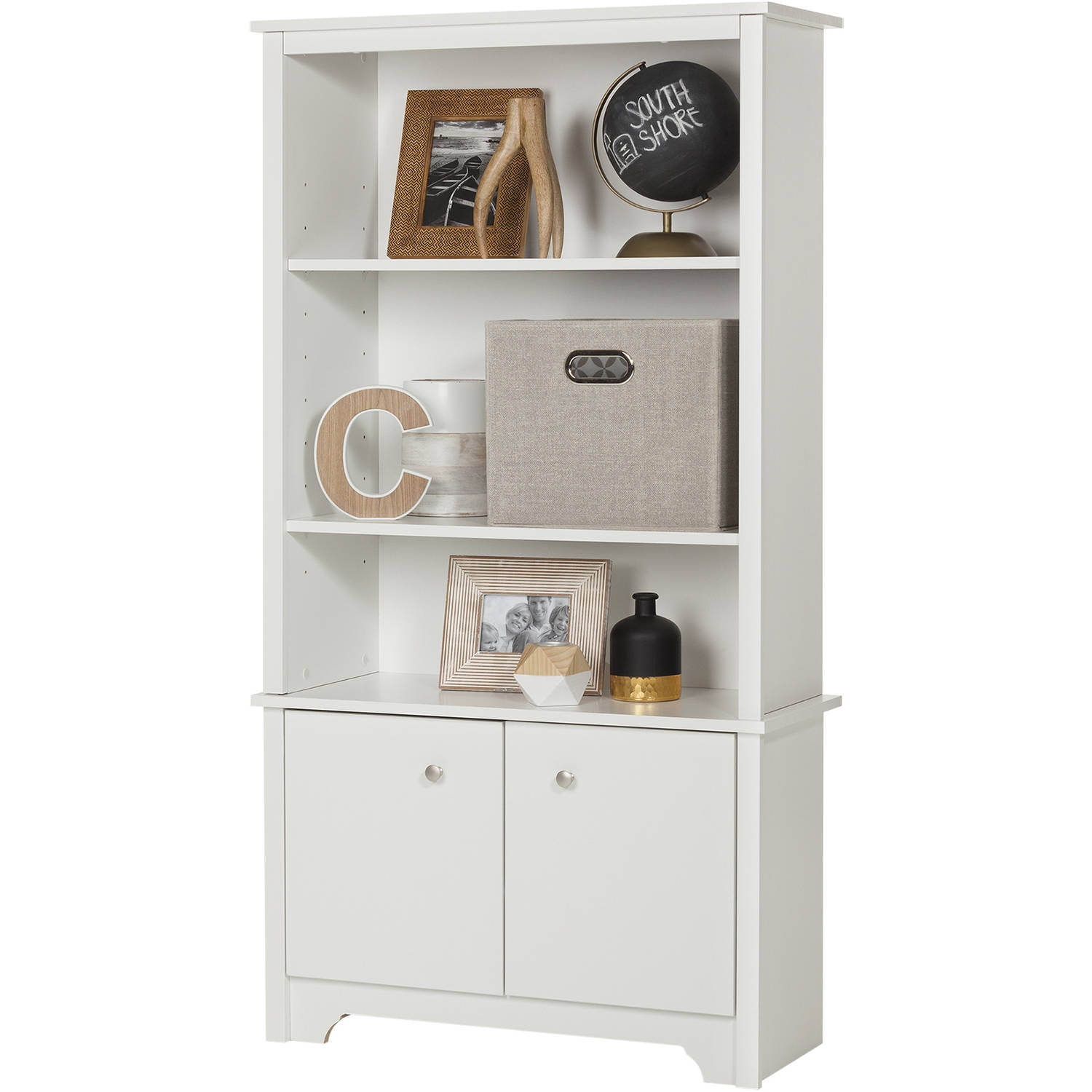 For REPLACING PARTS and HELP DURING ASSEMBLY, please contact us by phone at 1-800-290-0465, text message at 915-800-2833 (USA) (fees may apply), email at [email protected] or fill a part request form on . South Shore Vito, Contemporary 3-Shelf Bookcase with Doors, Pure White Metal knobs in a Matte Nickel finish 3 open storage spaces separated by 2 adjustable shelves Behind the doors: 2 storage spaces separated by 1 adjustable shelf Made in North America with non-toxic, laminated particleboard. Accessories not included. 5-year limited warranty. Any questions? Contact South Shore, available 7/7: 1-800-290-0465 or Assembly is required and tools are not included. All products come with a clear assembly document that will guide you through all steps. If you have any questions during the assembly do not hesitate to contact South Shore Furniture for immediate support. This item is shipped in 1 box. Box dimensions : 45.75″ (L) x 14.5″ (W) x 8.75″ (H) 75 lb All our products meets or exceeds North American safety standards and our packaging are tested and certified to reduce the risk of damage during shipment. Clean with a dry cloth