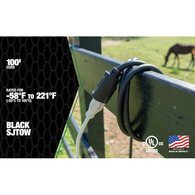 Southwire 100-ft 10/3 3 Prong Black Indoor/Outdoor SJTOW Super Heavy Duty General Extension Cord
