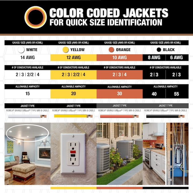 Southwire’s Romex® SIMpull® type NM-B may be used for both exposed and concealed work in normally dry locations at temperatures not to exceed 90°C.