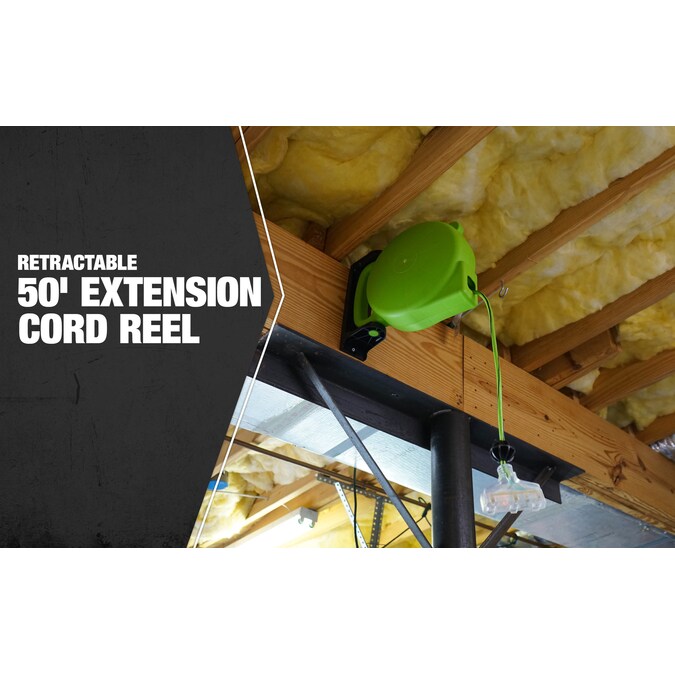 • Heavy duty construction grade retractable cord reel perfect for use in your garage or workshop