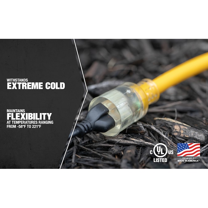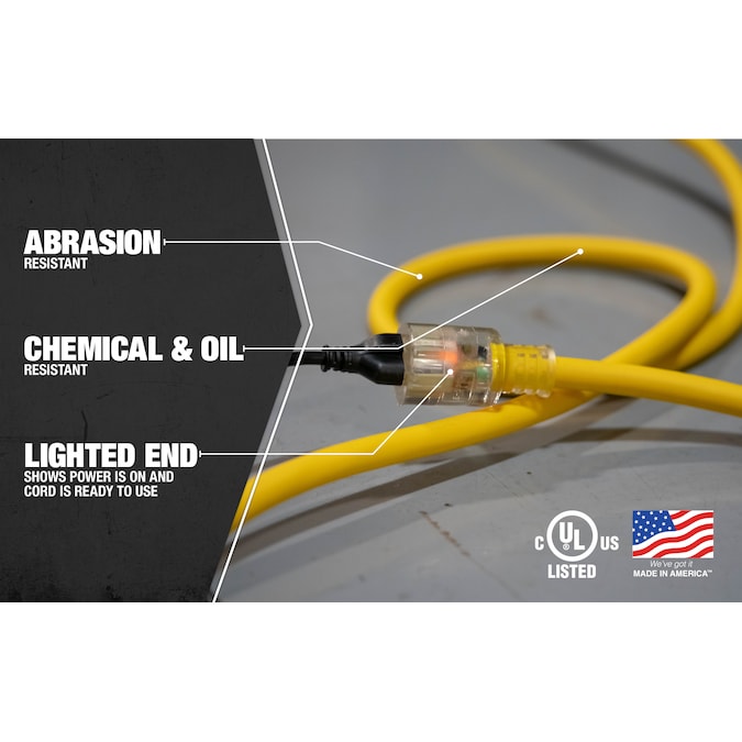 Southwire 50-ft 10/3 3 Prong Yellow Outdoor SJEOW Super Heavy Duty Lighted Extension Cord