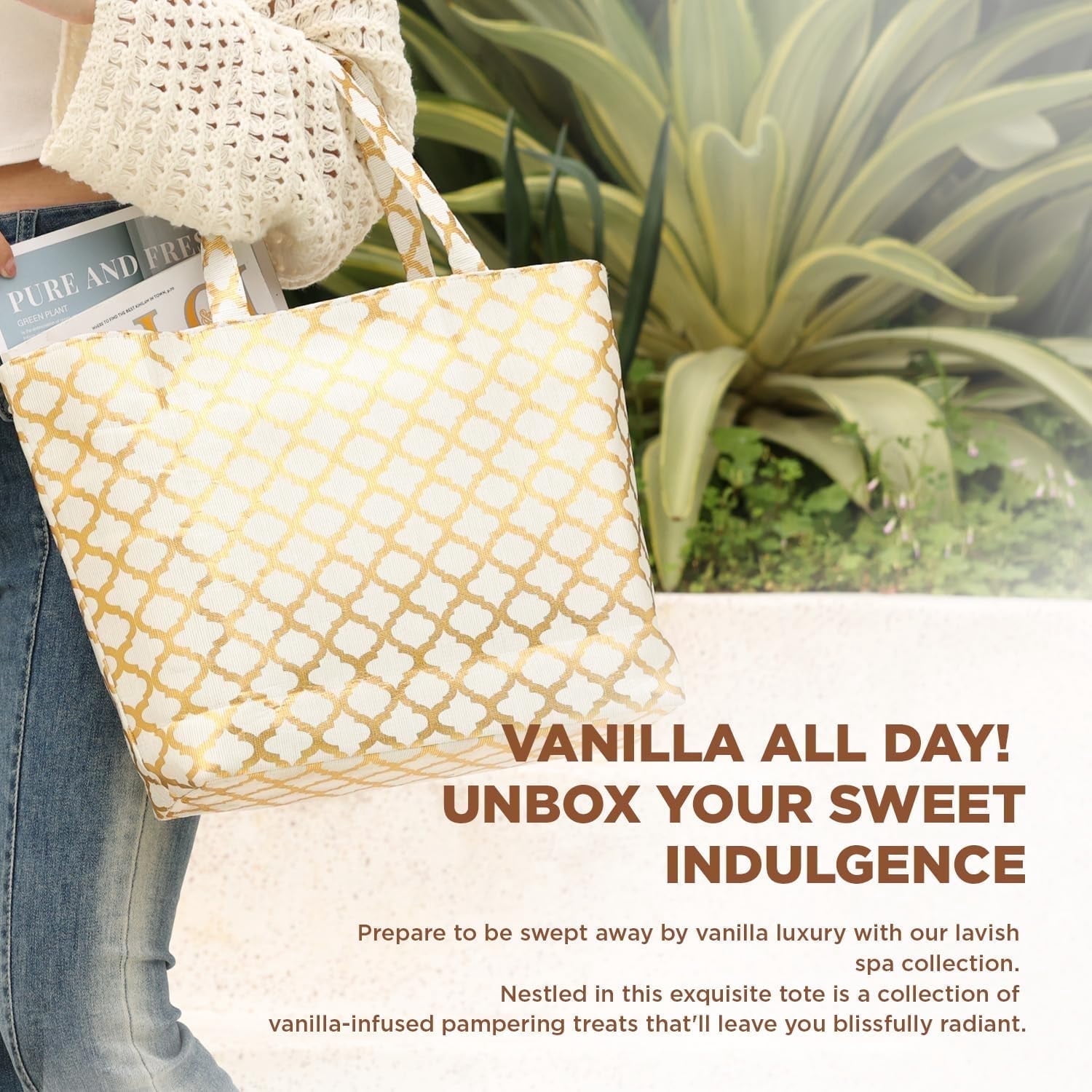 LUXURY SPA GIFT SET FOR WOMEN The Spa Luxetique Gift Set for Women is a luxurious collection, perfect for pampering and relaxation. This exquisite 15-piece set features a harmonious blend of vanilla-scented products, creating a soothing and warm aromatic experience. Ideal for indulging in a spa-like bath at home, the set includes an array of items such as bubble bath, shower gel, bath salts, body lotion, body butter, hand cream, and more. All infused with the comforting scent of vanilla. PERFECT FOR A RELAXING HOME SPA Each product is crafted with high-quality ingredients that nourish and rejuvenate the skin, leaving it feeling soft, smooth, and delicately fragranced. Beautifully packaged, this bath basket is an elegant gift choice for birthdays, holidays, or special occasions, offering a touch of luxury and relaxation to any woman’s daily routine.