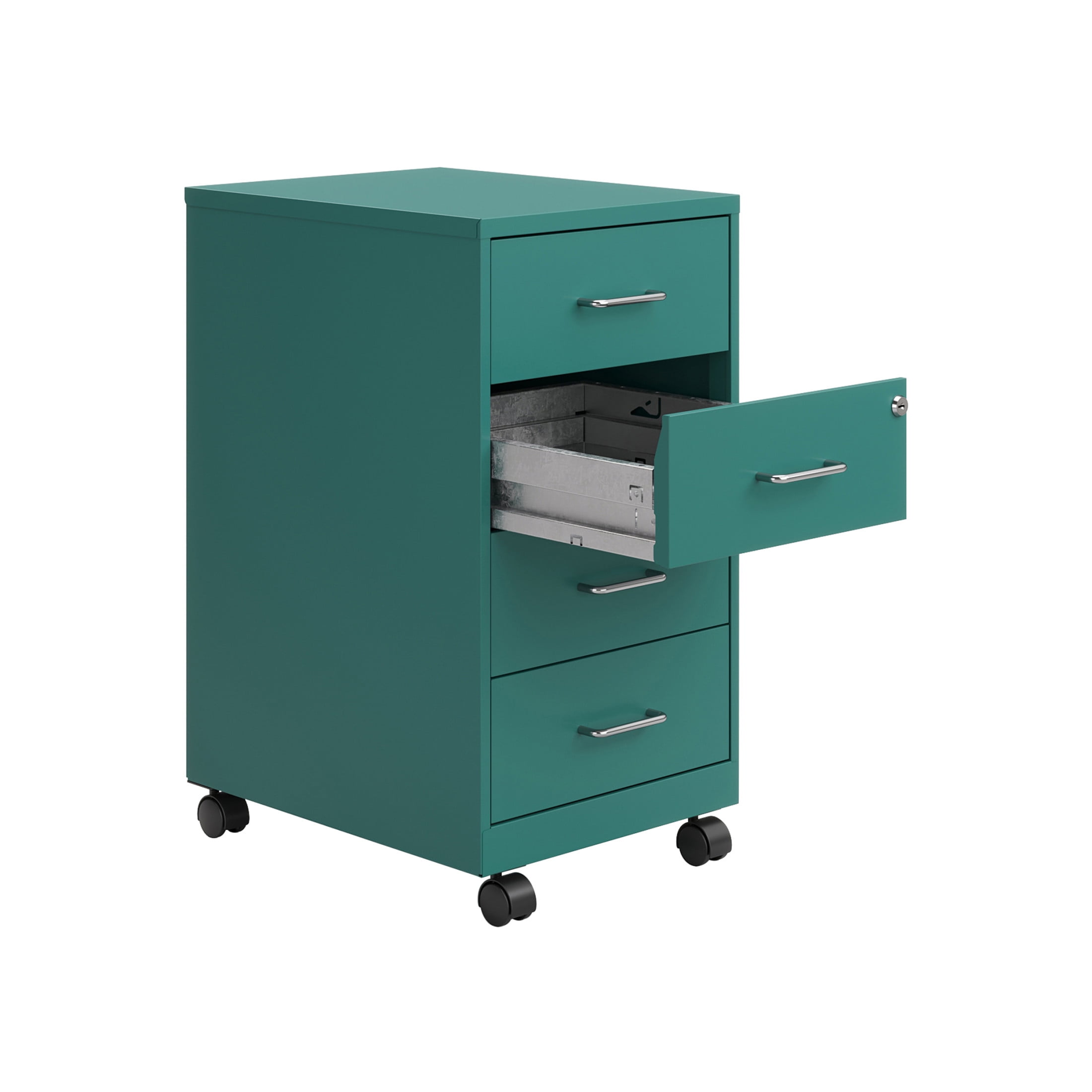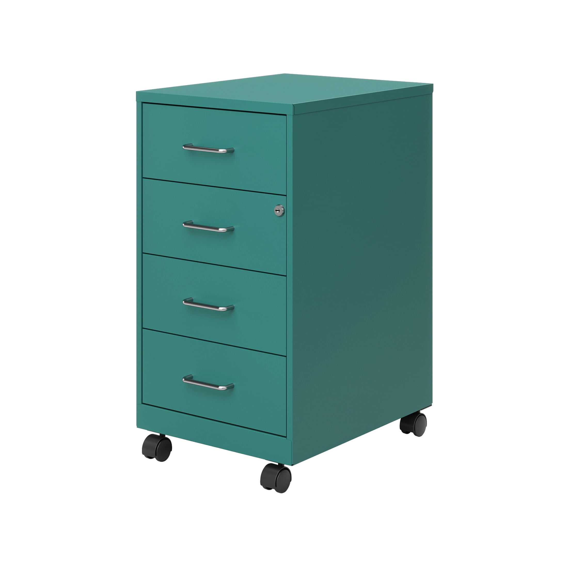 Space Solutions 18″ Deep 4 Drawer Metal Mobile Organizer, 4 Box Drawers, Locking, Teal